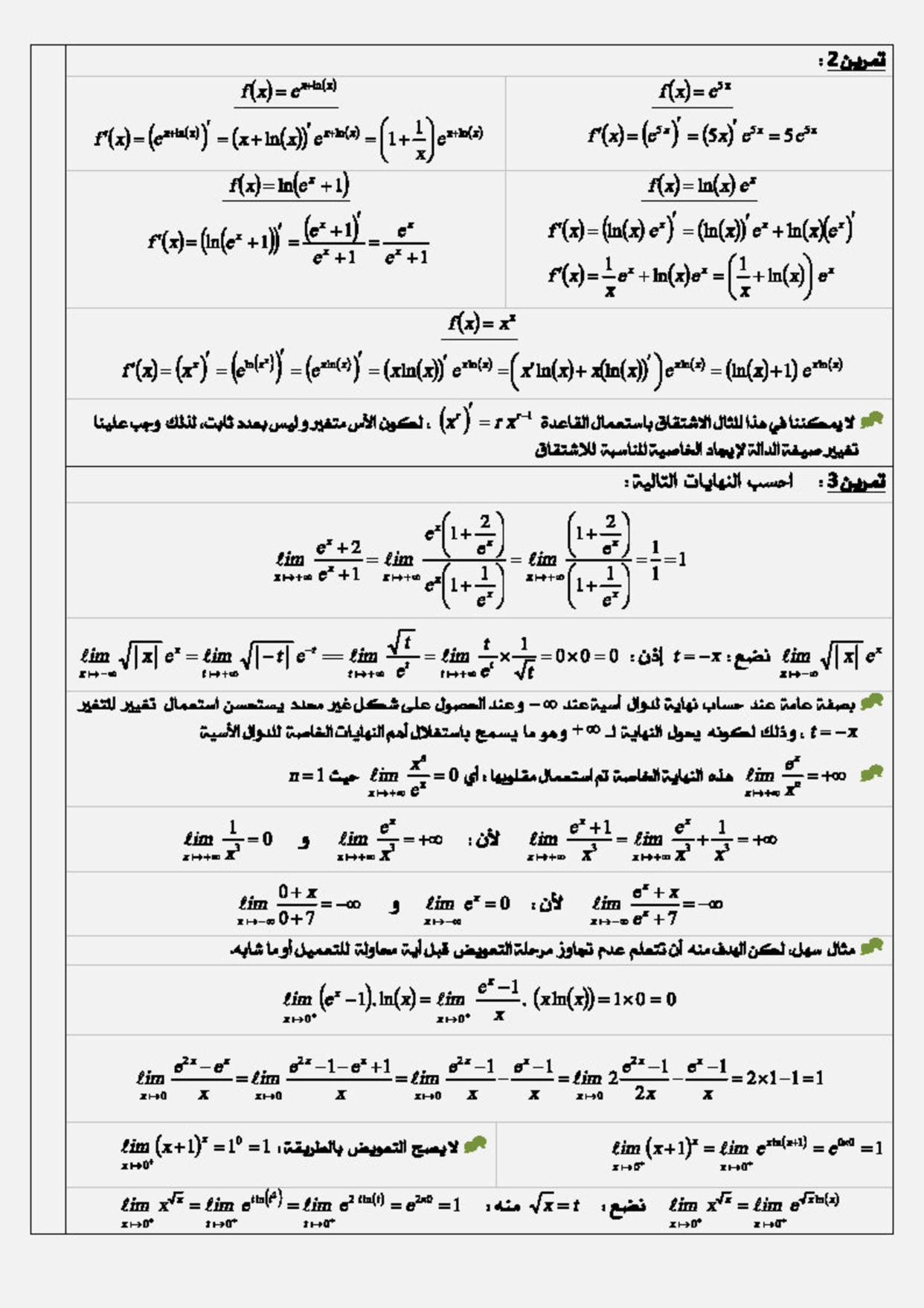 الدوال الأسية - تصحيح سلسلة التمارين 1