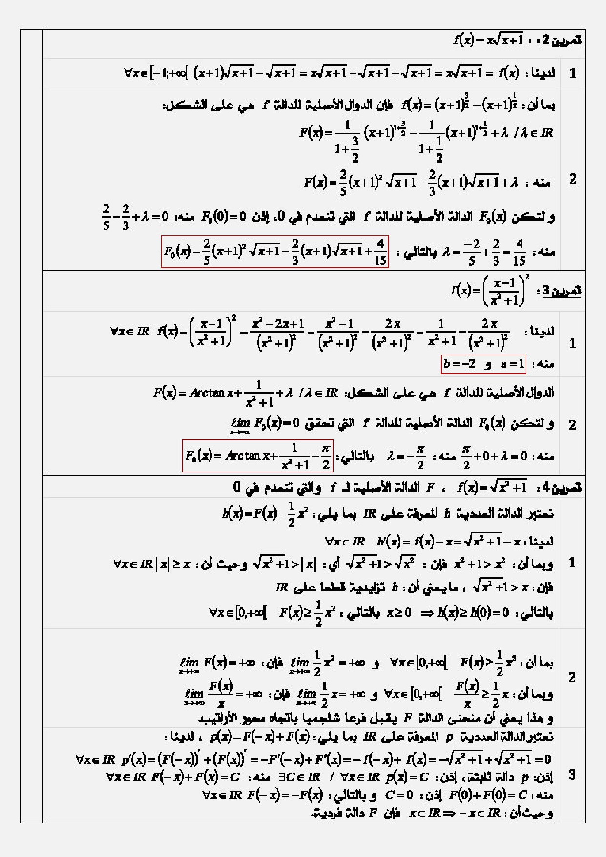 الدوال الأصلية - تصحيح سلسلة التمارين 1