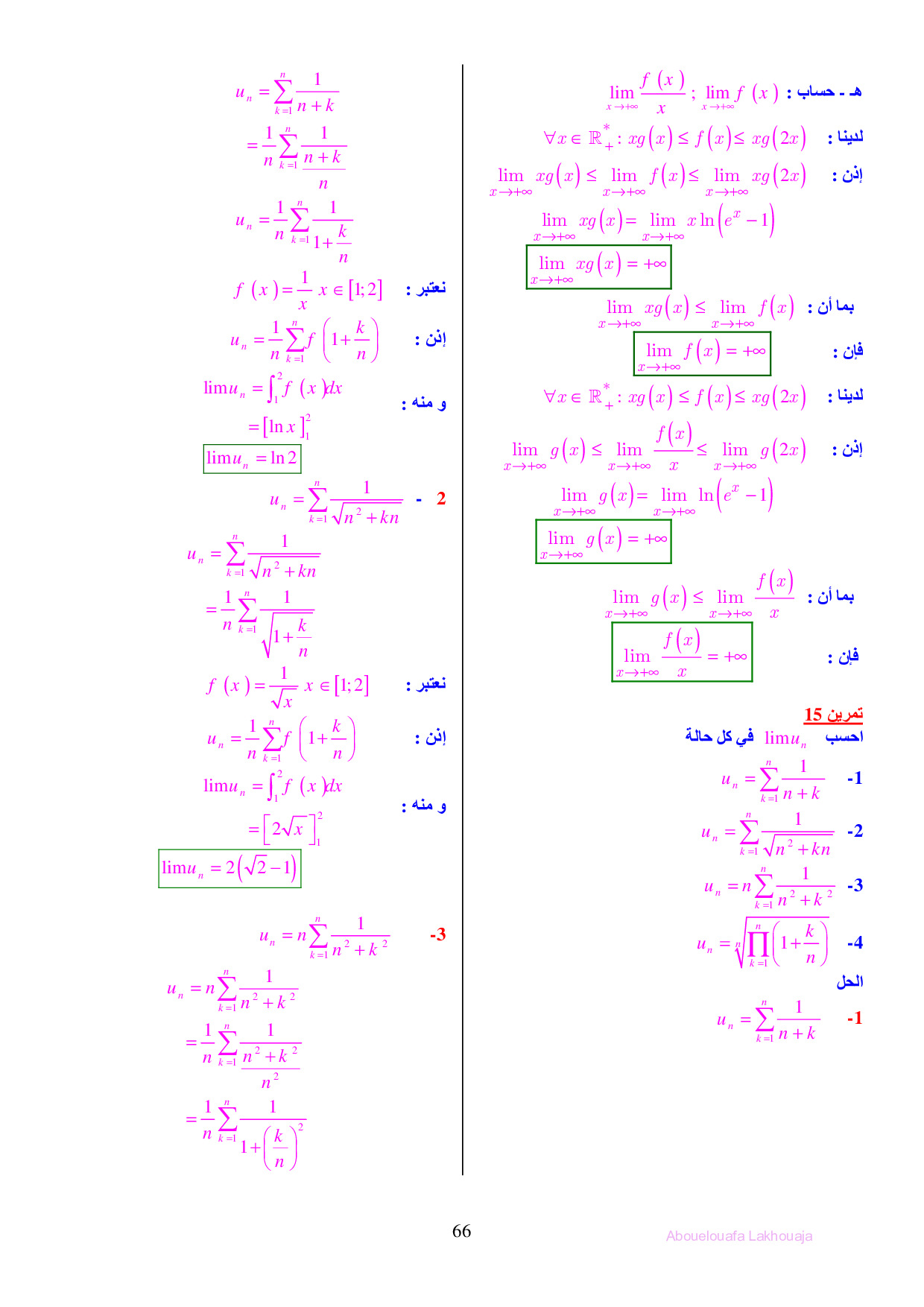 الدوال الأصلية والتكامل - تمارين محلولة 1