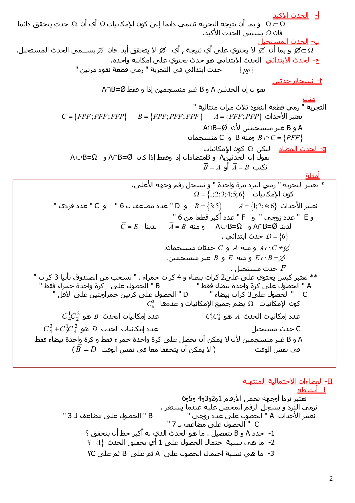 الاحتمالات - الدرس 3