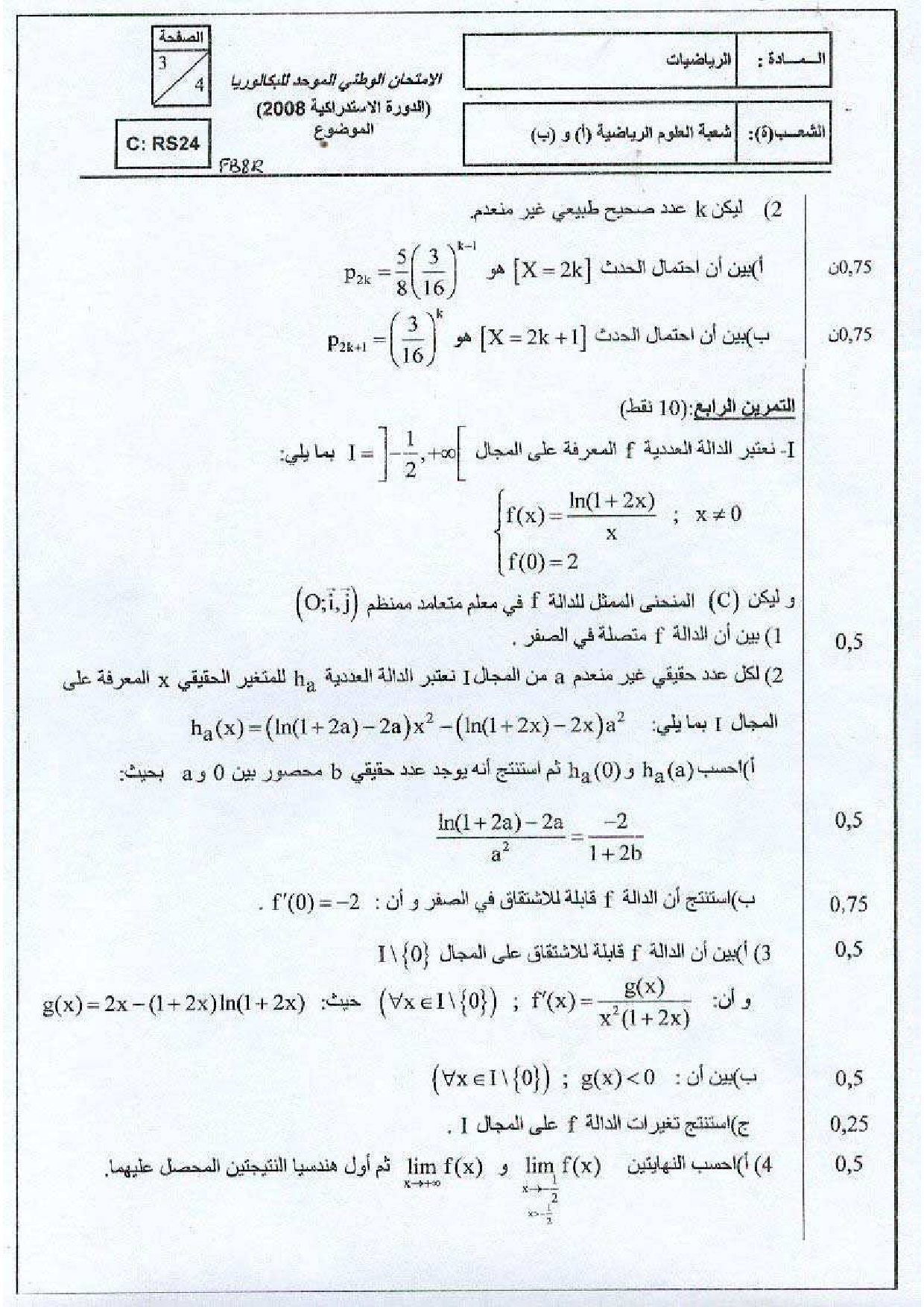 الرياضيات علوم رياضية 2008 الدورة الإستدراكية - الموضوع