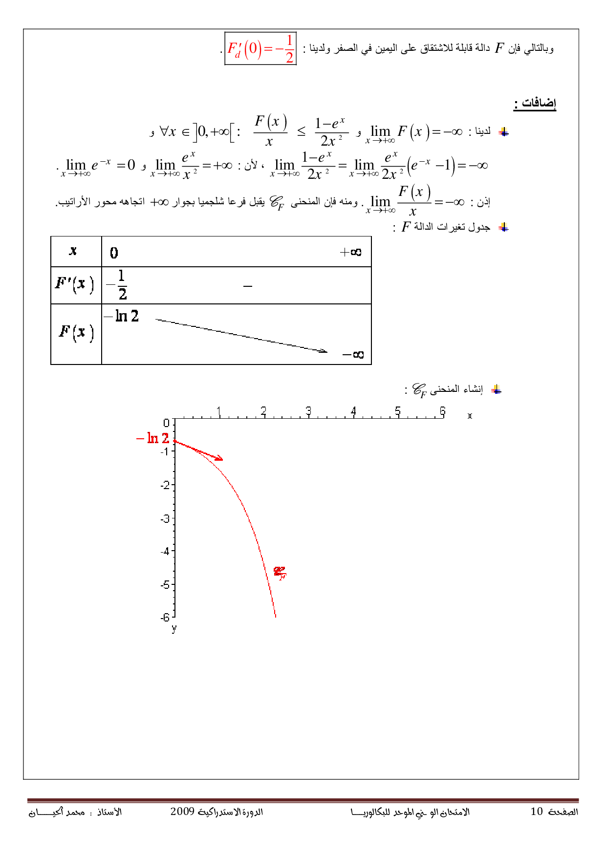الرياضيات علوم رياضية 2009 الدورة الإستدراكية - التصحيح