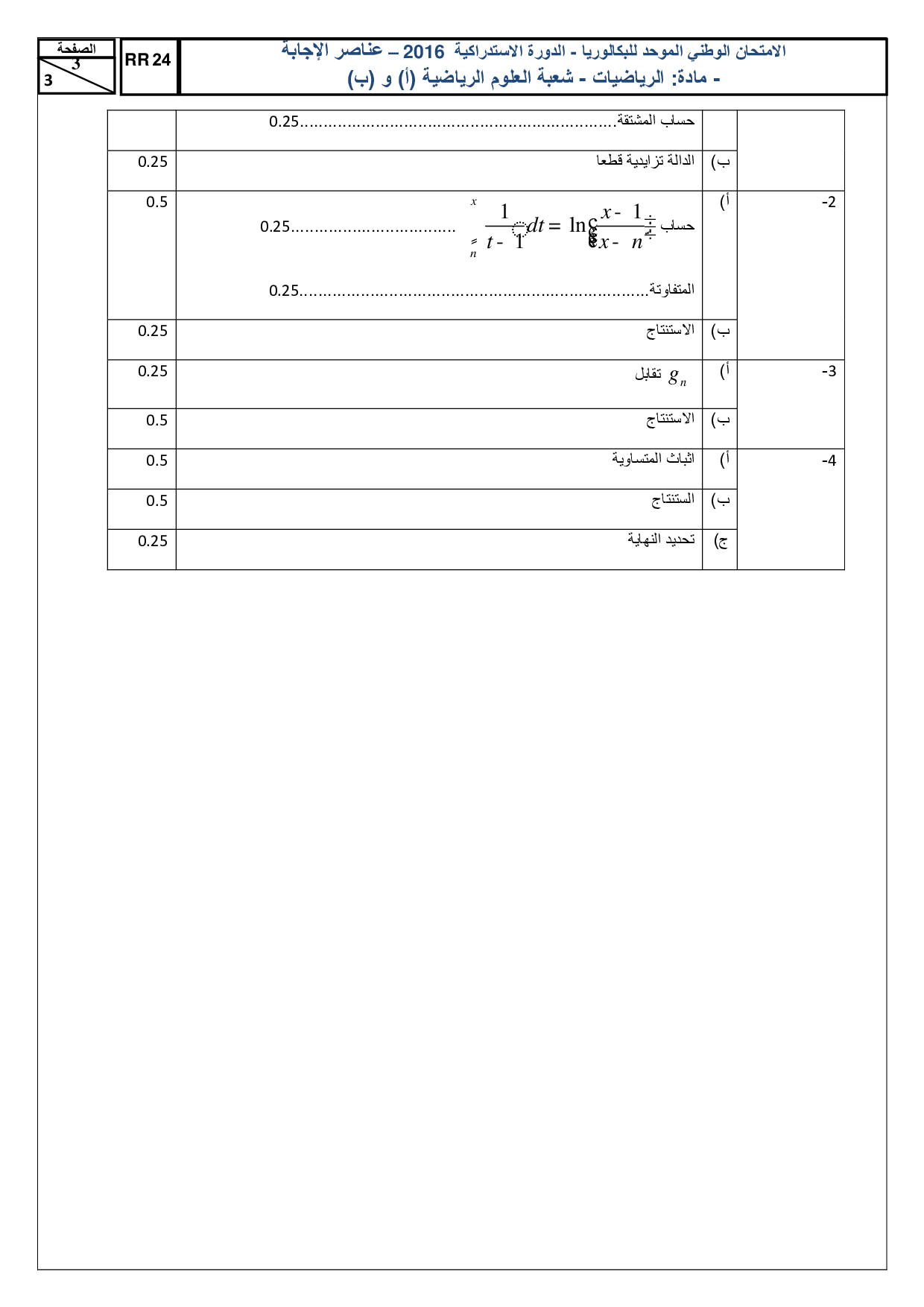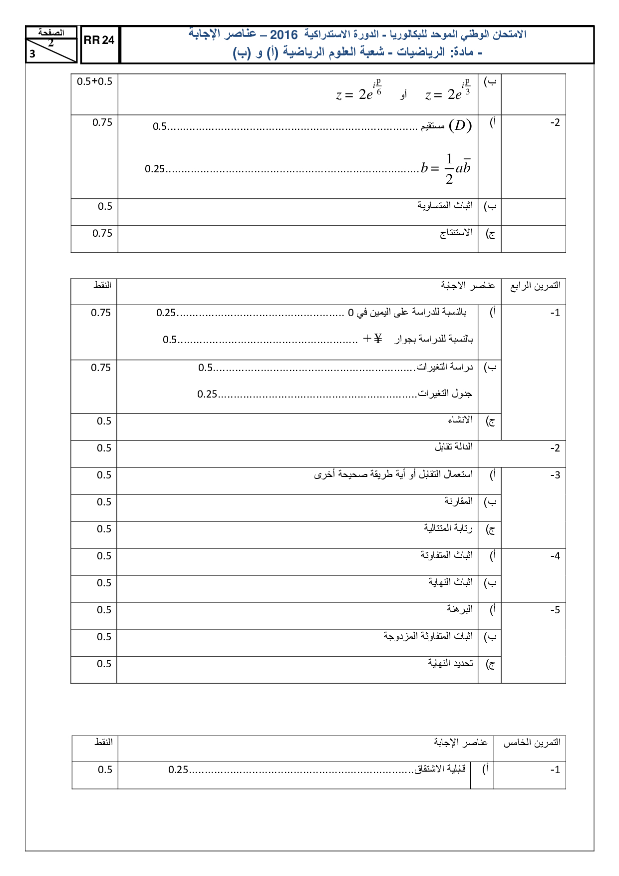 الرياضيات علوم رياضية 2016 الدورة الإستدراكية - التصحيح