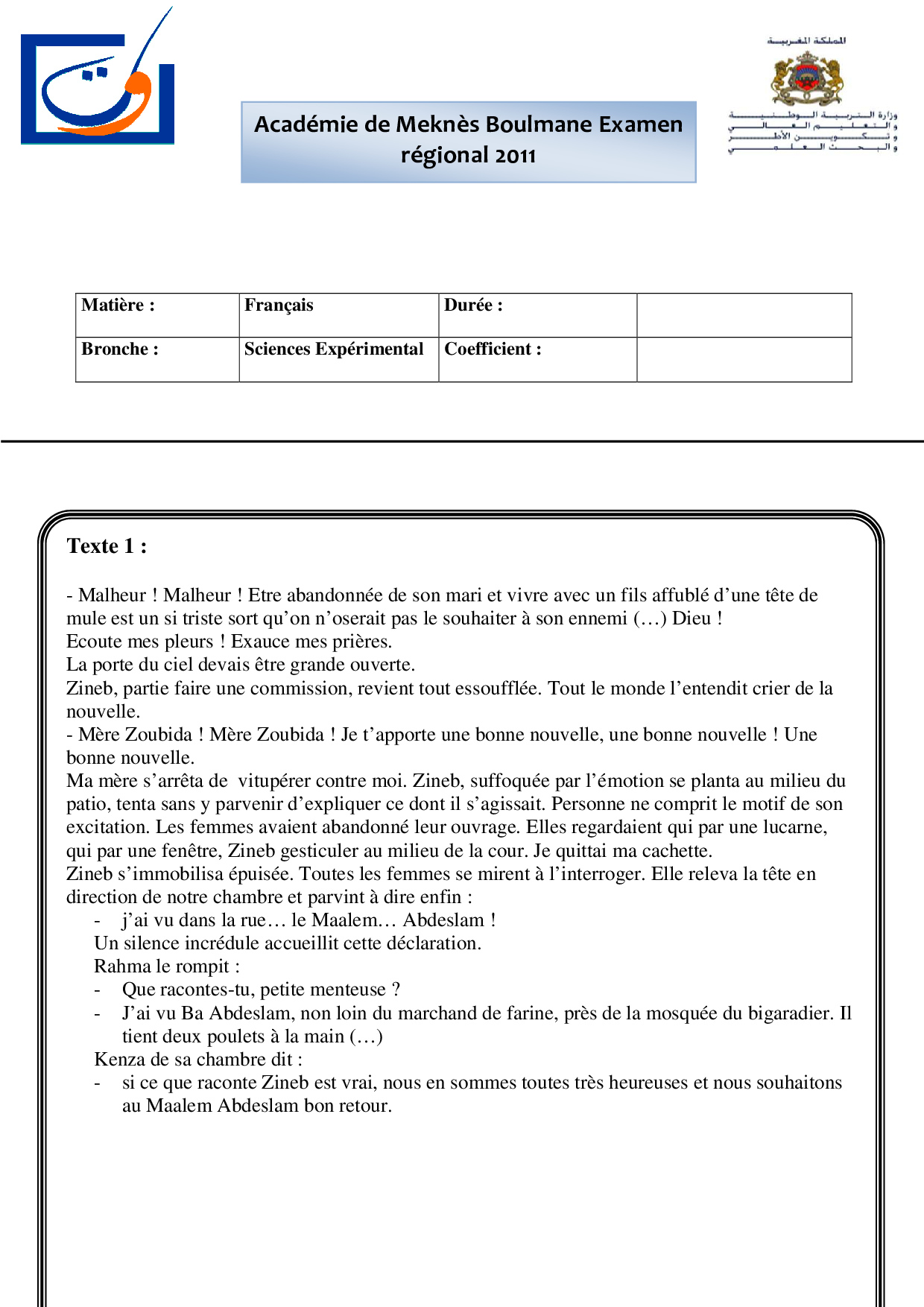 Français: 1er BAC Sciences Expérimentales