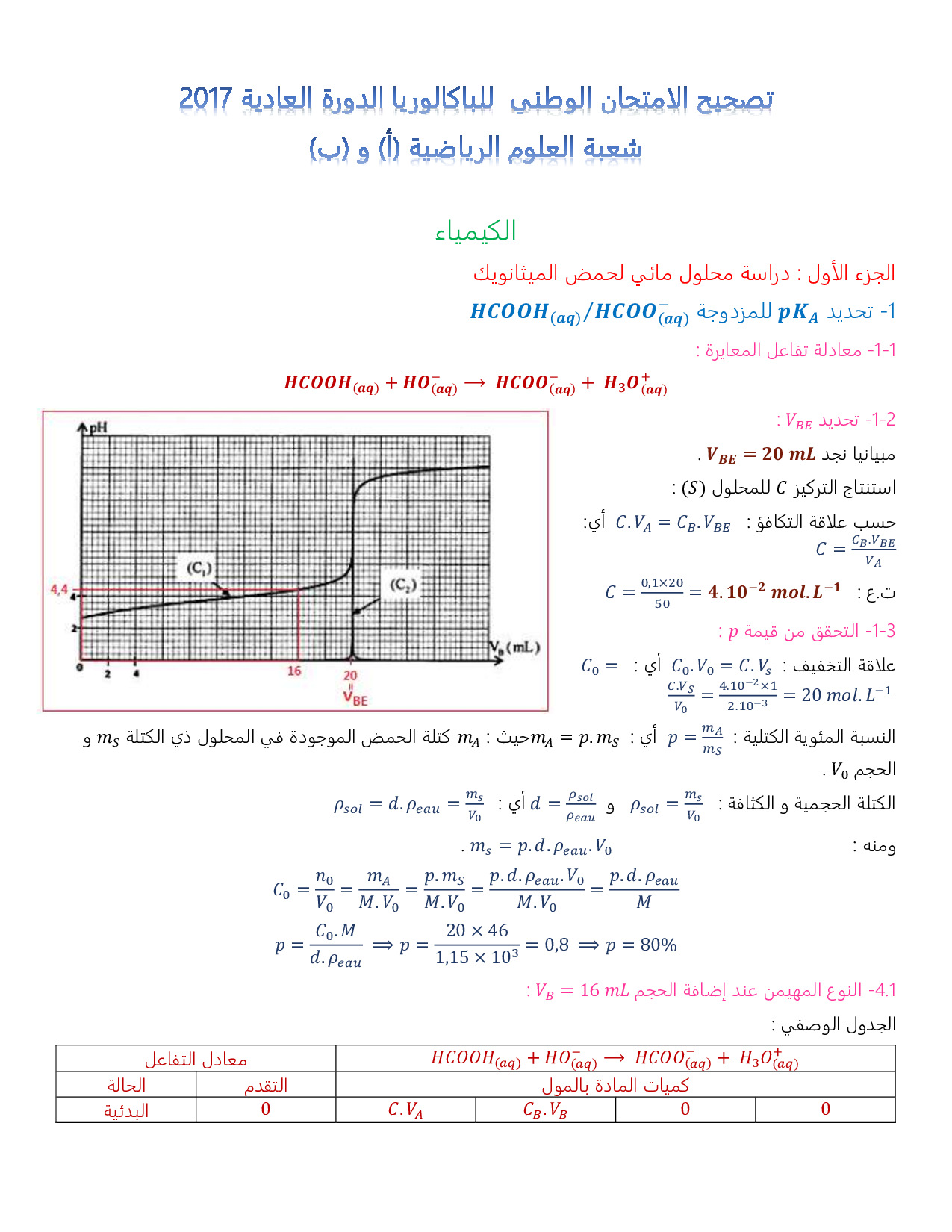 الفيزياء والكيمياء علوم رياضية 2017 الدورة العادية - التصحيح