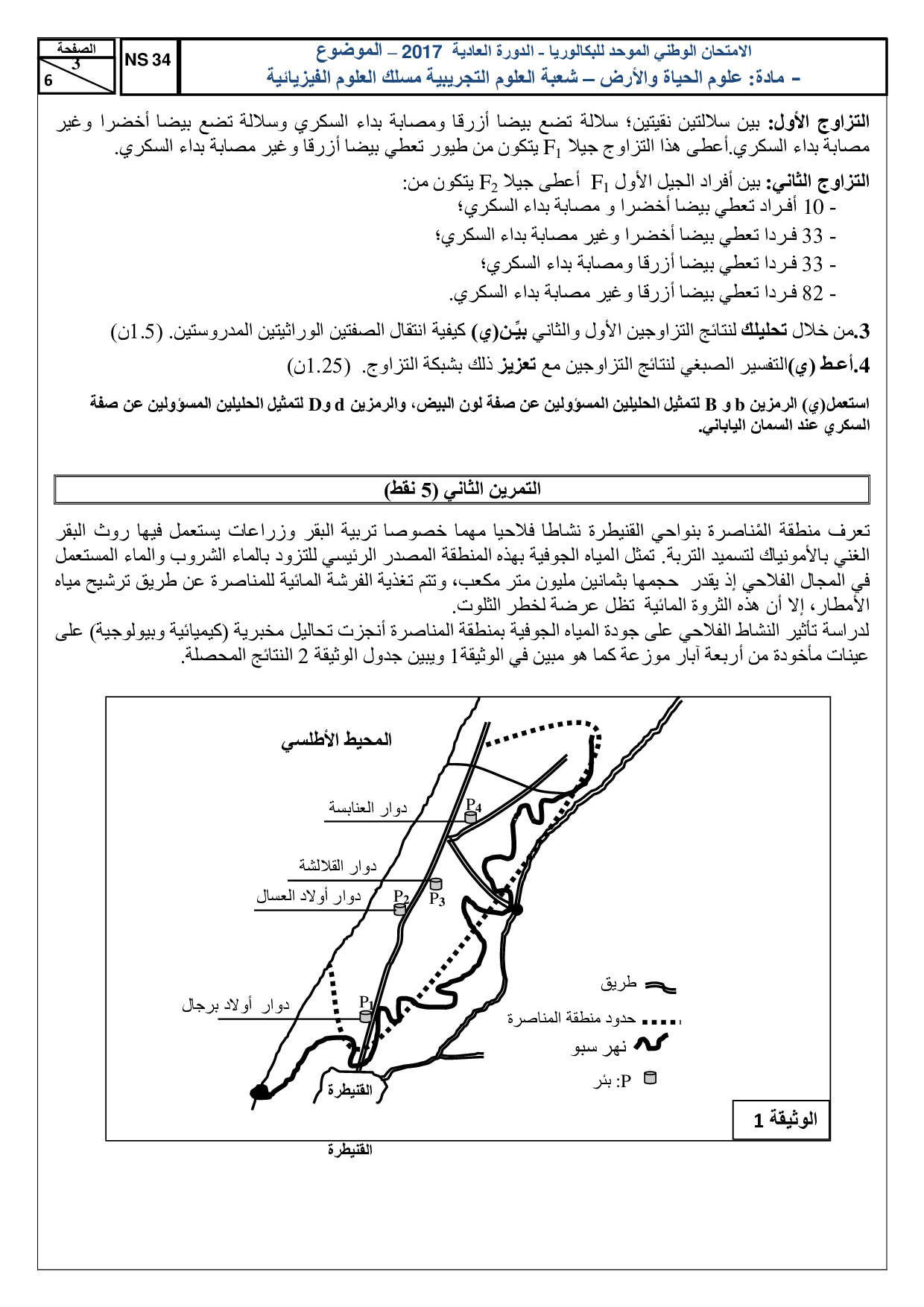 علوم الحياة والارض علوم فيزيائية 2017 الدورة العادية - الموضوع
