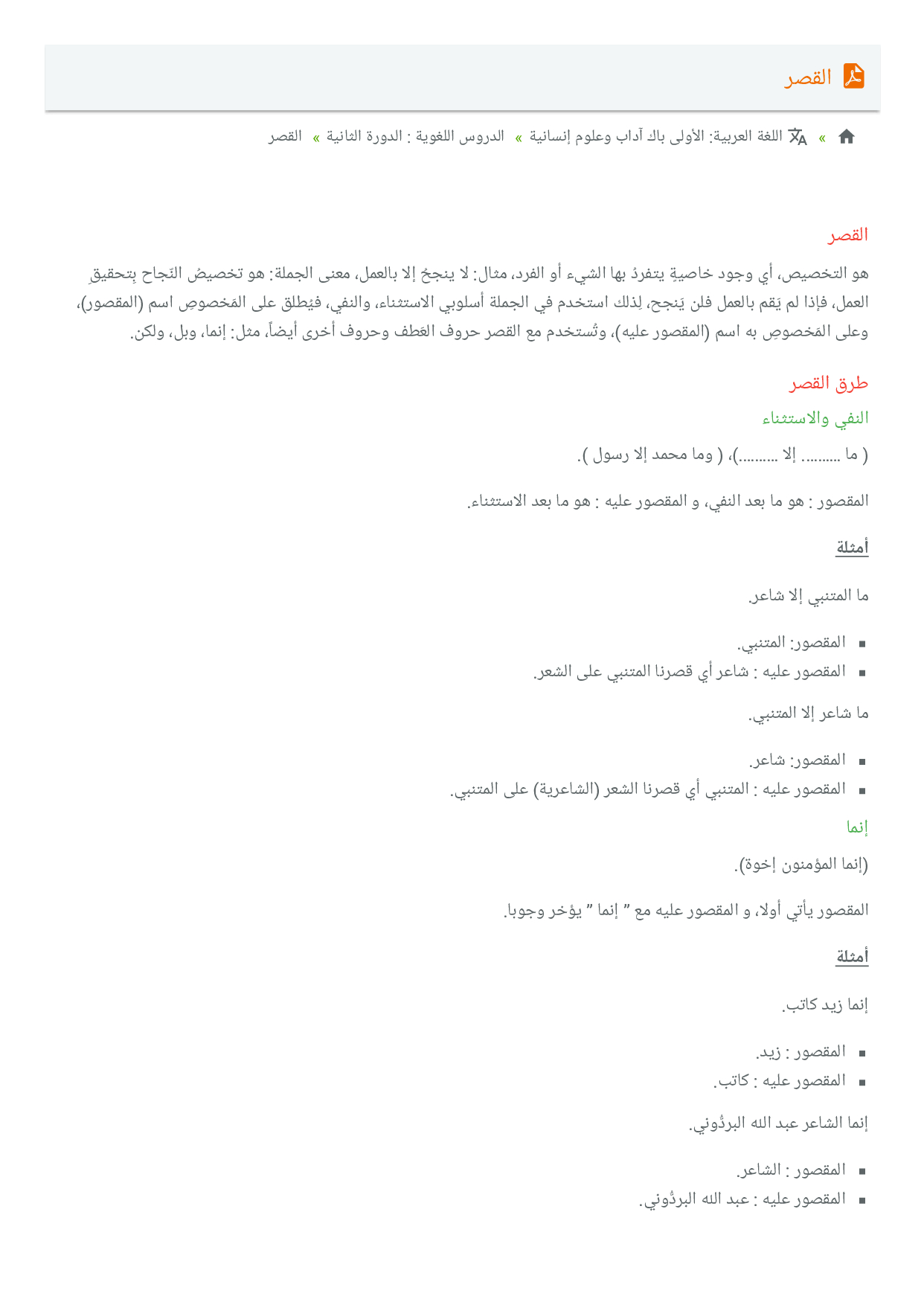 اللغة العربية: الأولى باك آداب وعلوم إنسانية