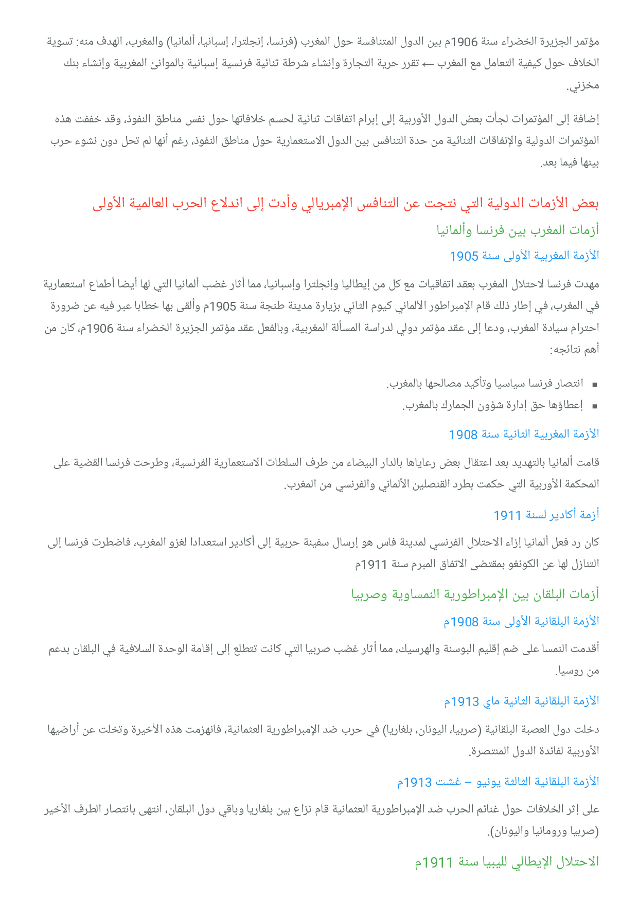 التنافس الامبريالي واندلاع الحرب العالمية الأولى