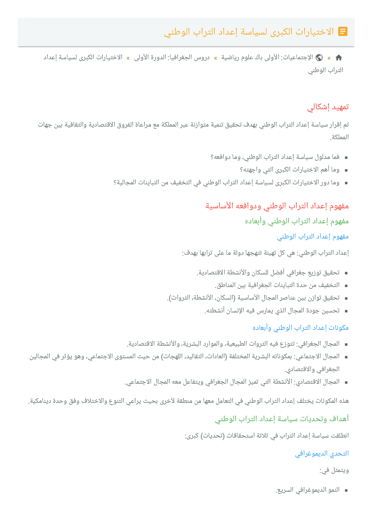 الإجتماعيات: الأولى باك علوم تجريبية