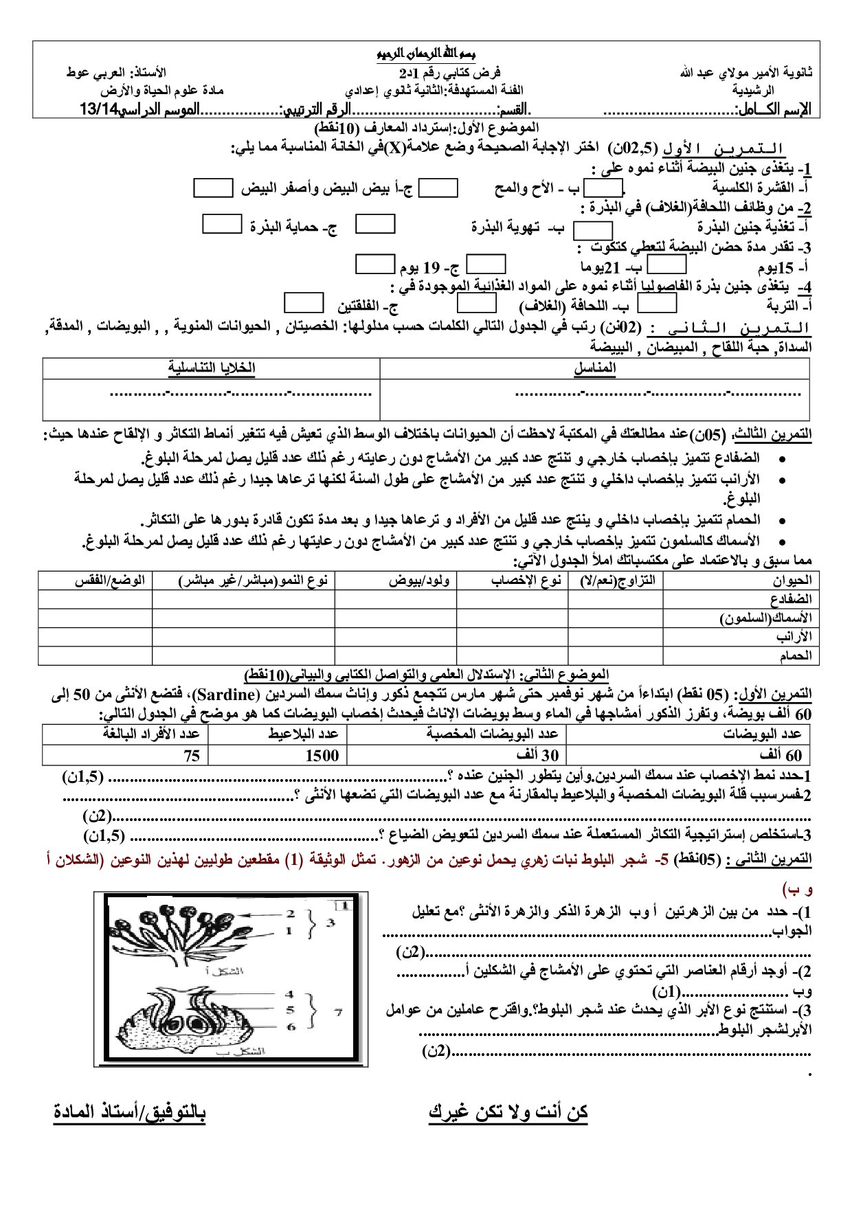 علوم الحياة والارض: الثانية إعدادي