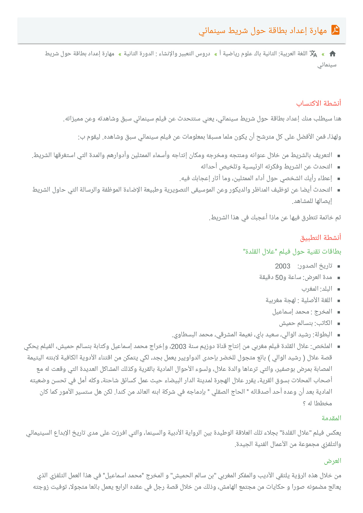 اللغة العربية: الثانية باك علوم وتكنولوجيات ميكانيكية