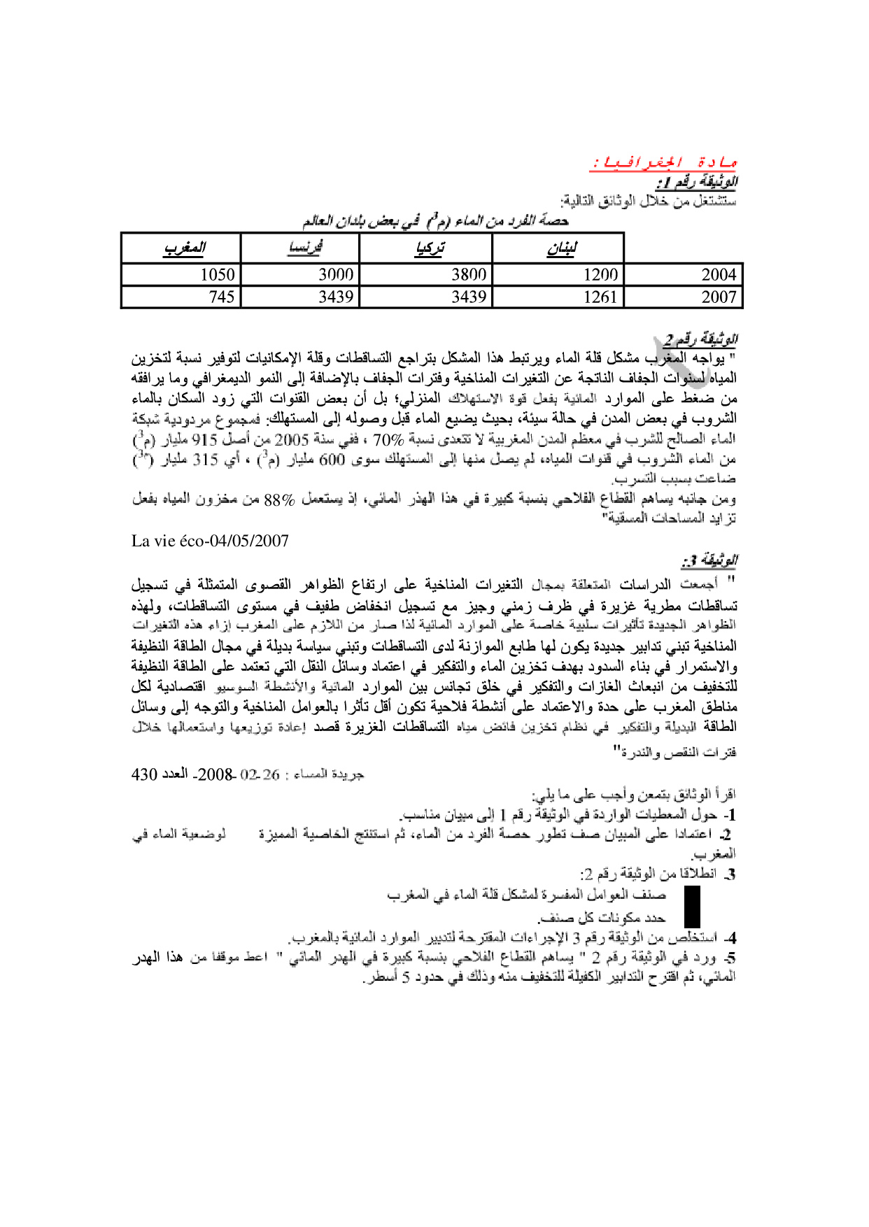 الإجتماعيات: الأولى باك علوم تجريبية