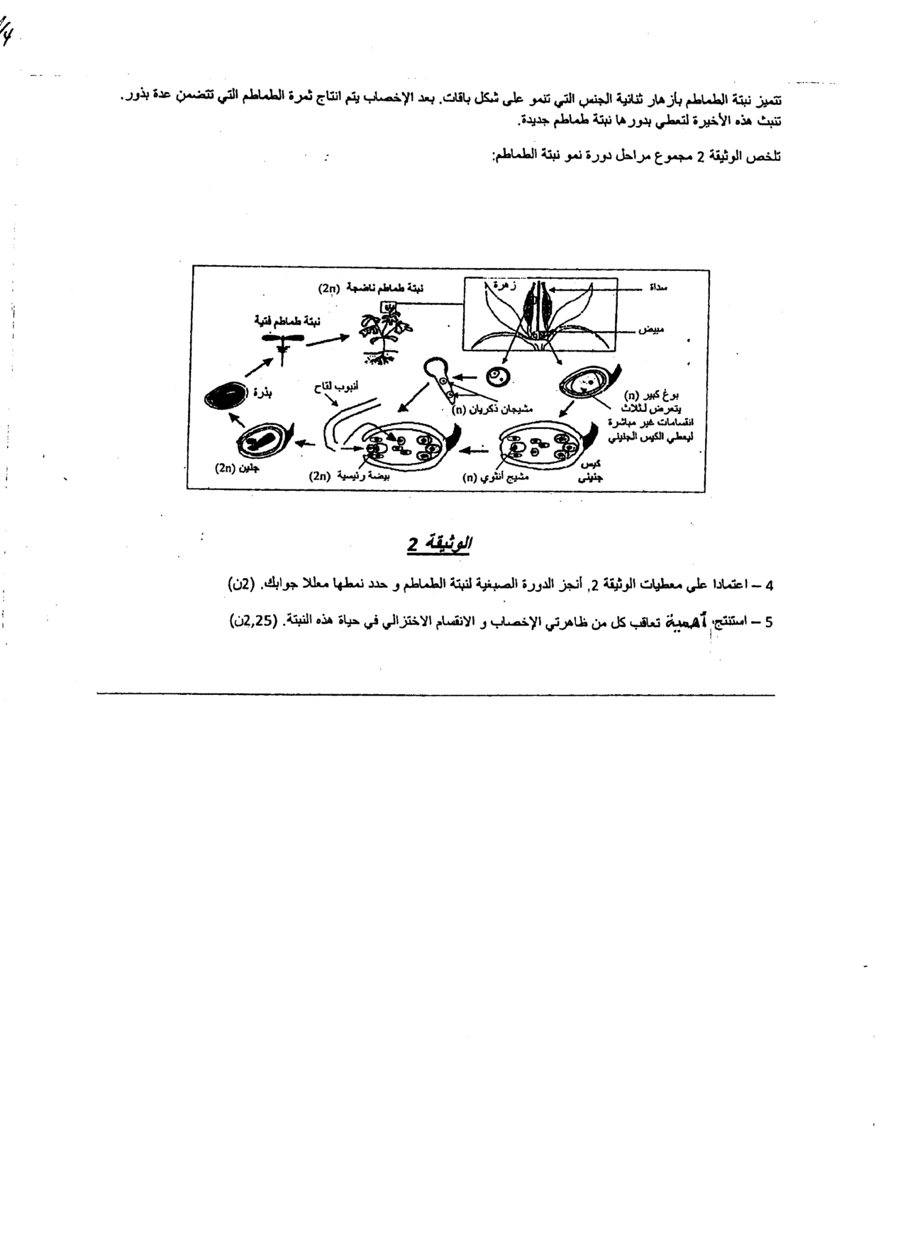 الفرض 2 نموذج 4 - علوم الحياة والارض جذع مشترك الدورة الثانية