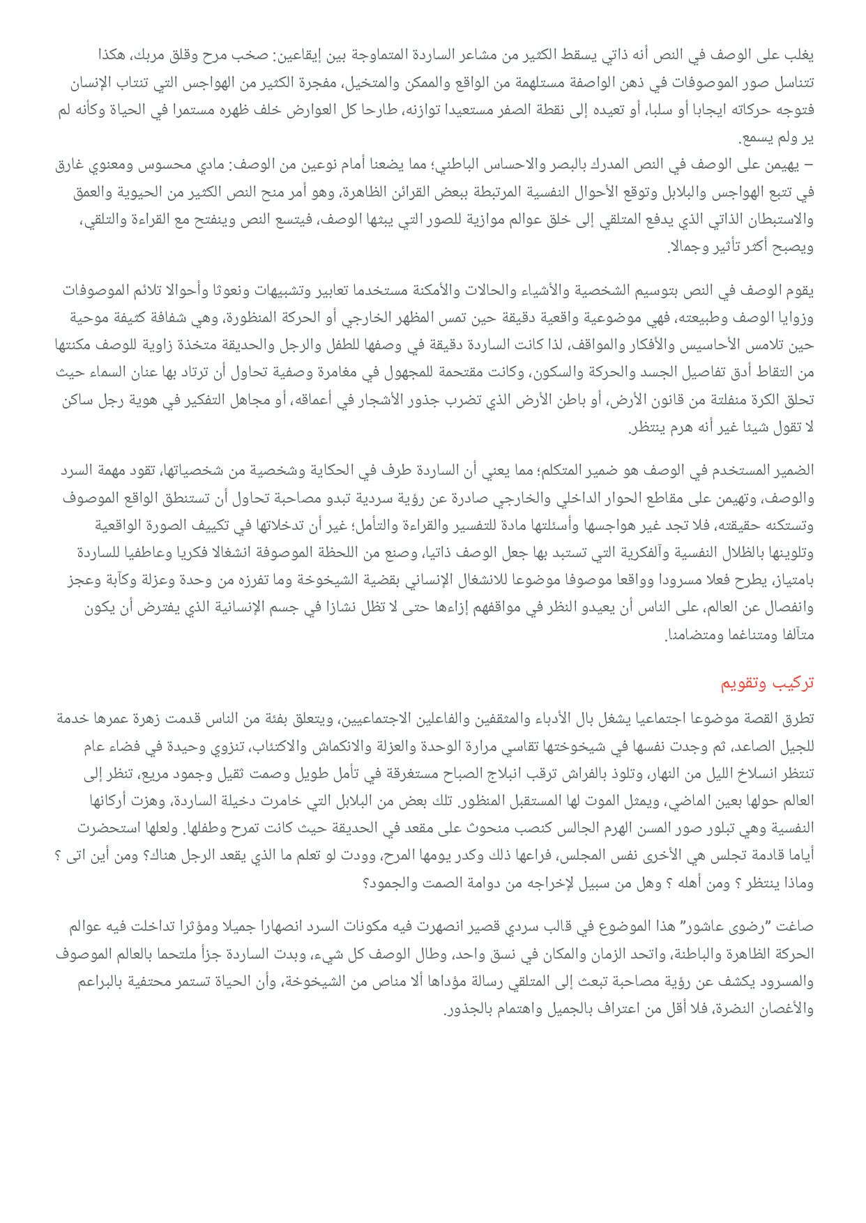 النص الوصفي - تحليل نص 'الجالس في الحديقة ينتظر' لرضوى عاشور