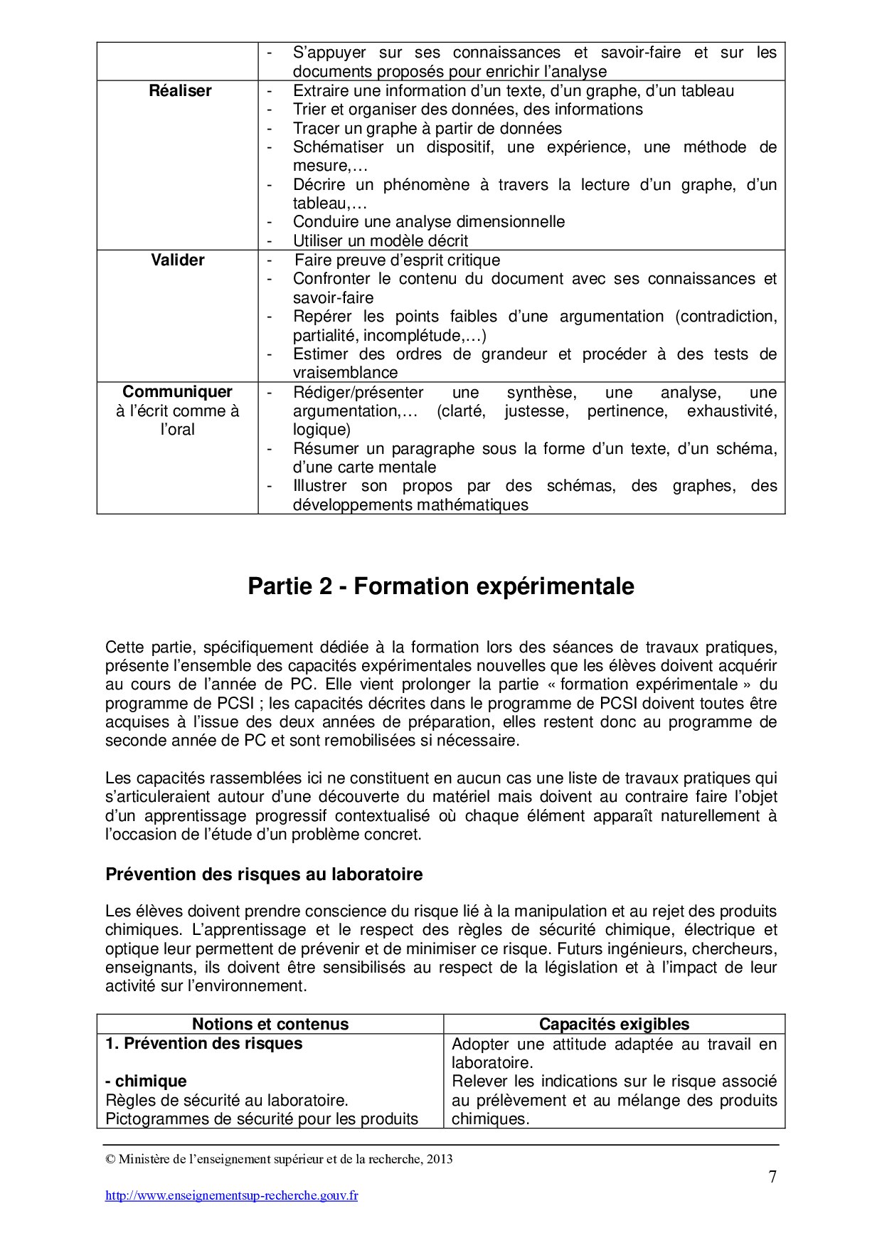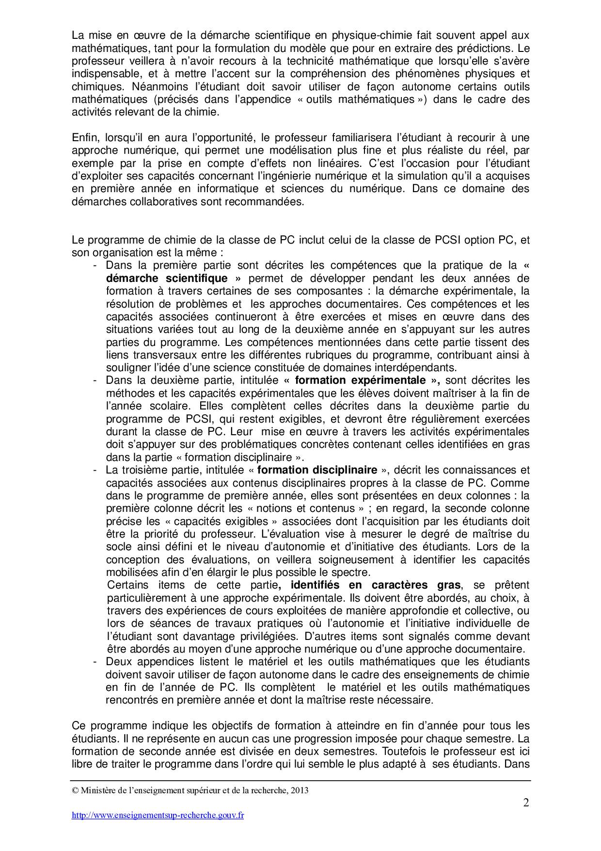 Programme Pédagogique Français (Chimie PC)