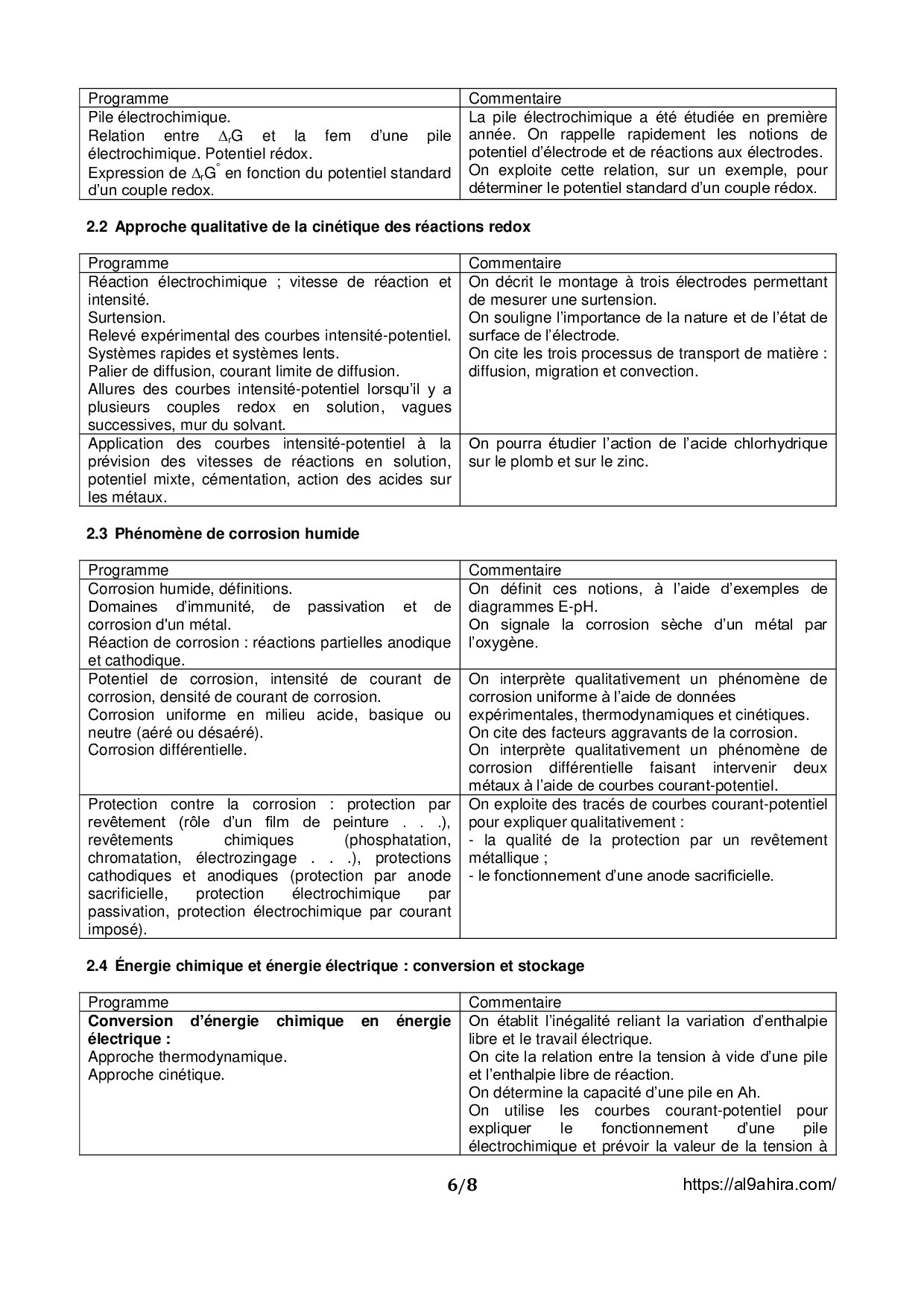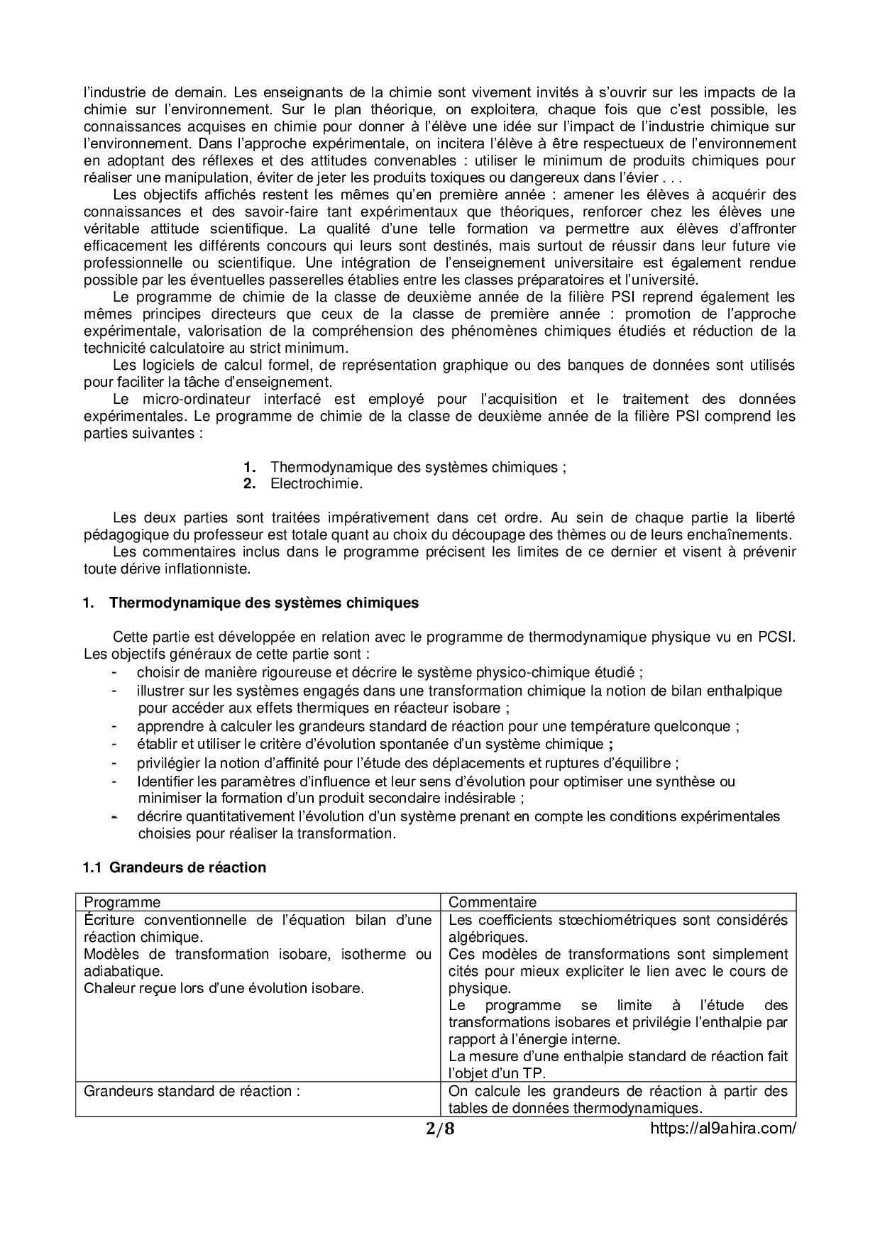 Programme Pédagogique Marocain (Chimie PSI)