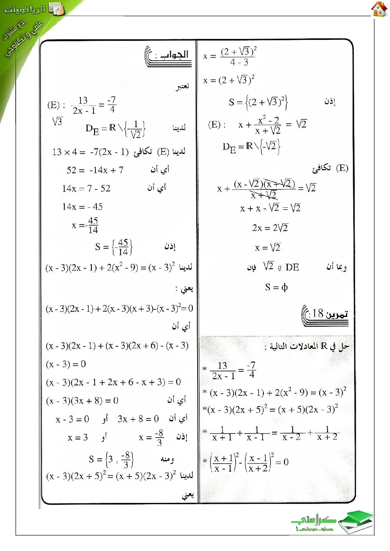 الرياضيات: الجذع المشترك علوم