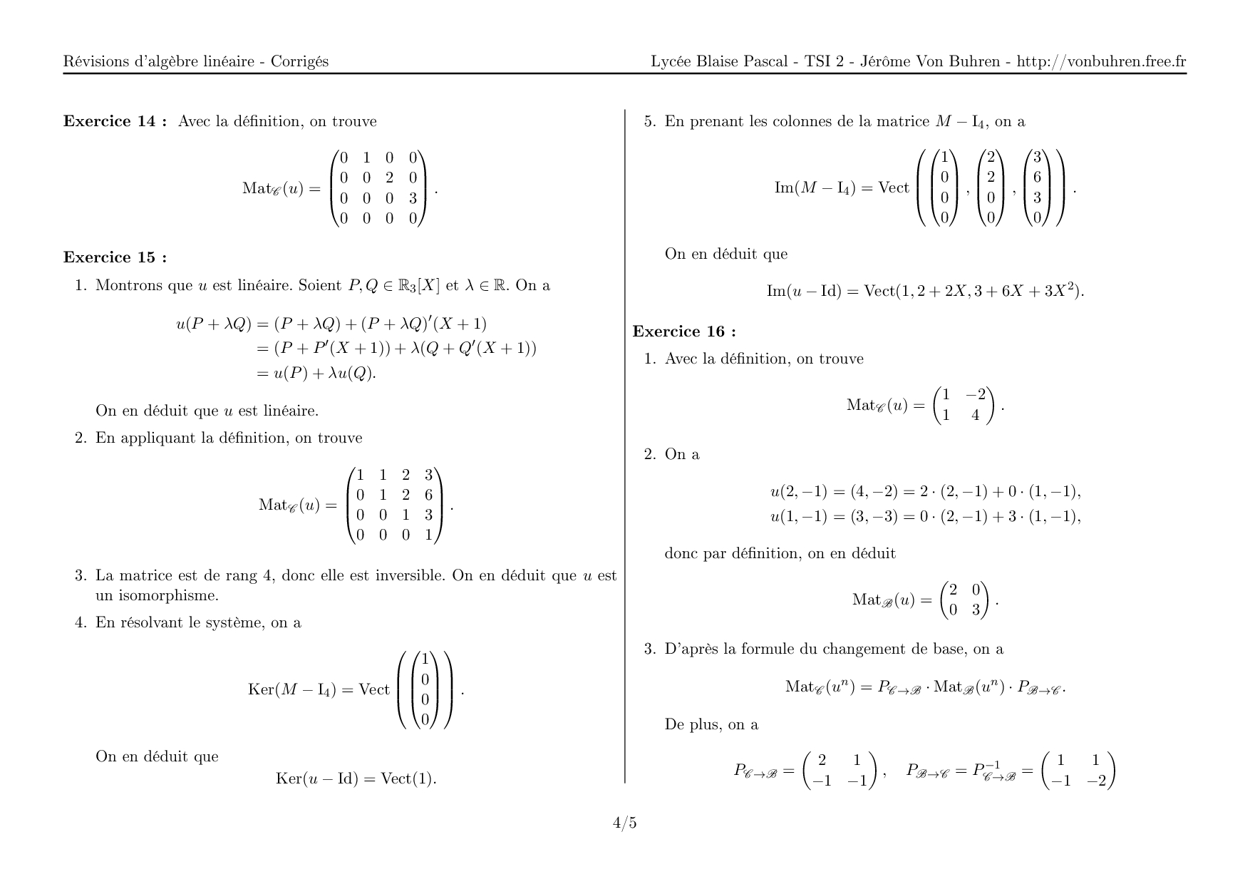 Corrigés Exercices de Révisions d'algèbre linéaire