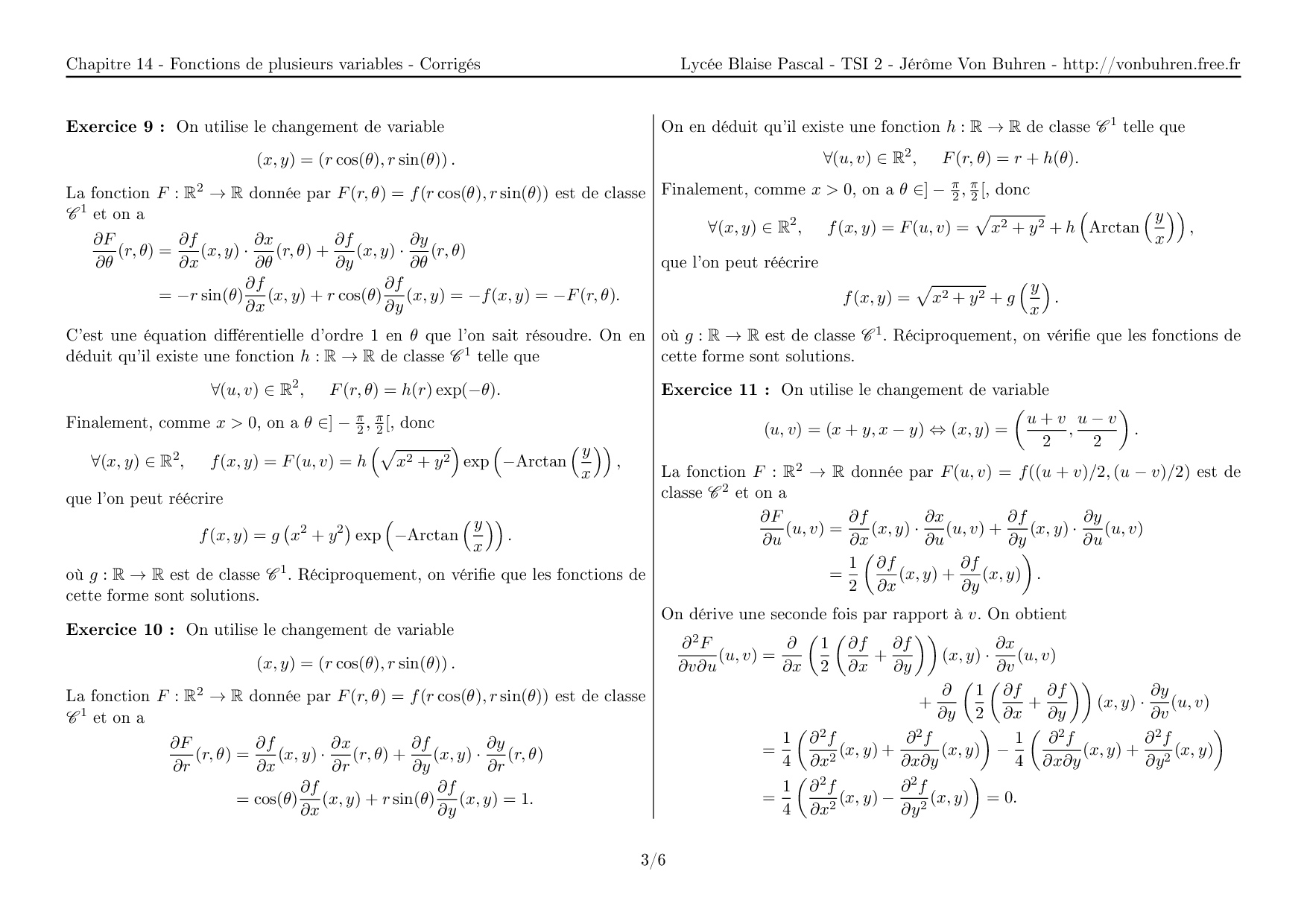 Corrigés Exercices Fonctions de plusieurs variables