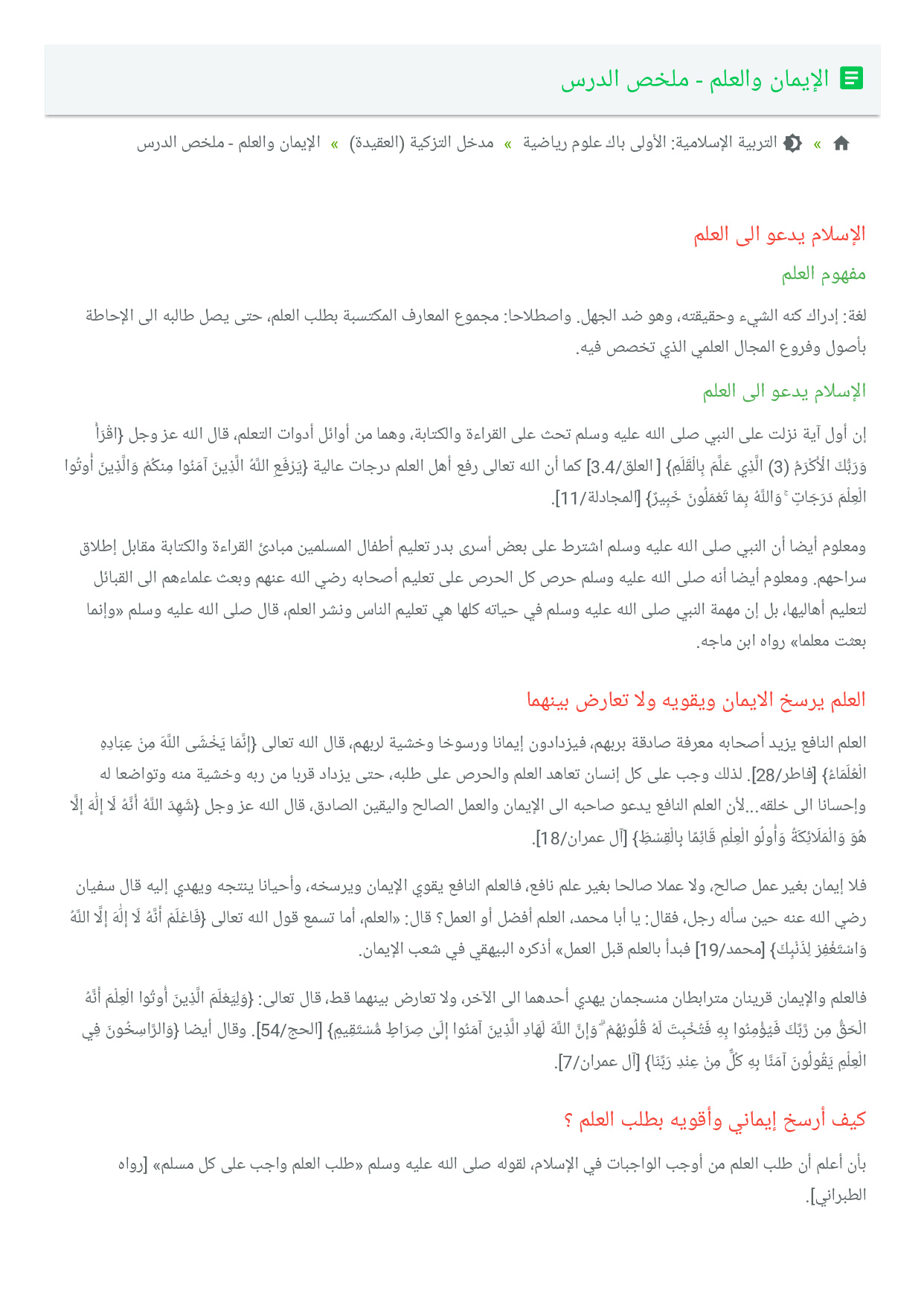 التربية الإسلامية: الأولى باك علوم وتكنولوجيات كهربائية