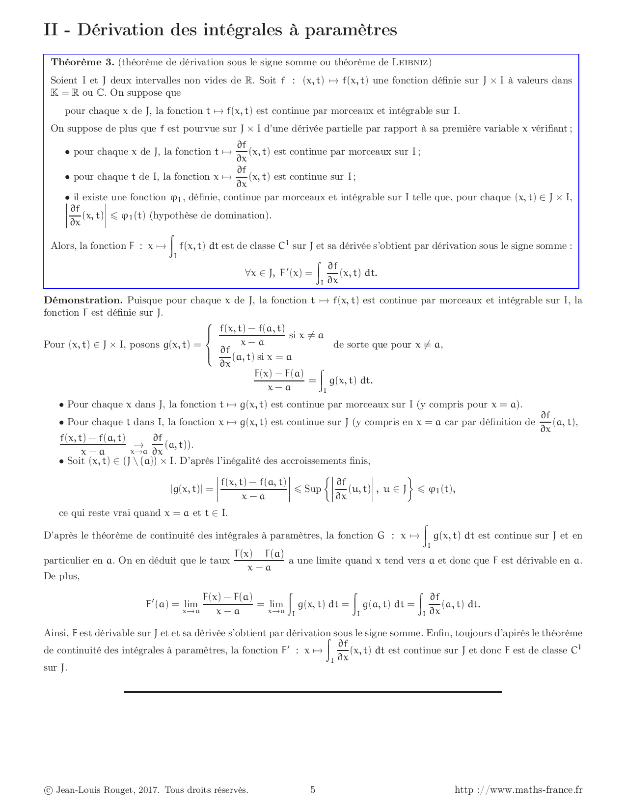 Cours Intégrales dépendant d'un paramètre