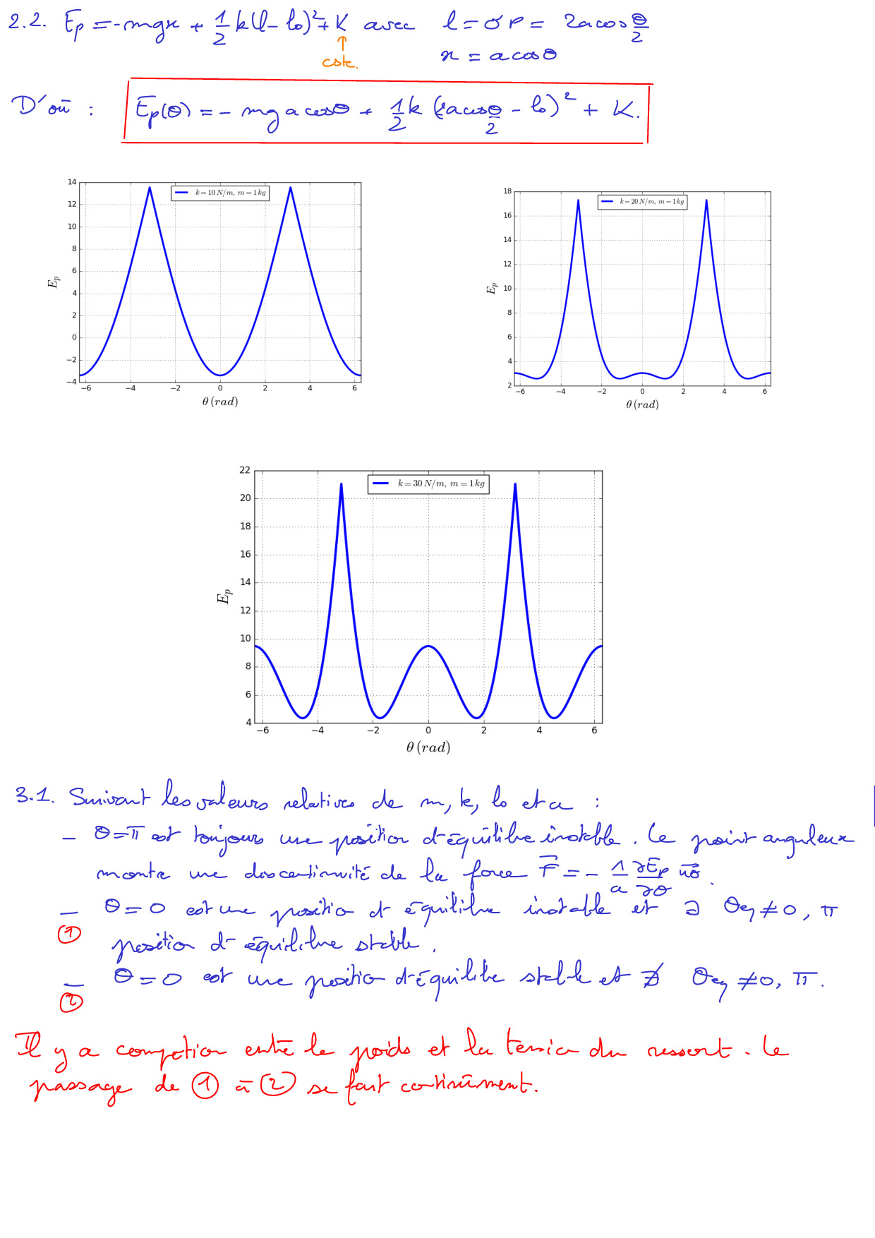 Approche énergétique de la dynamique du point matériel : Corrigés