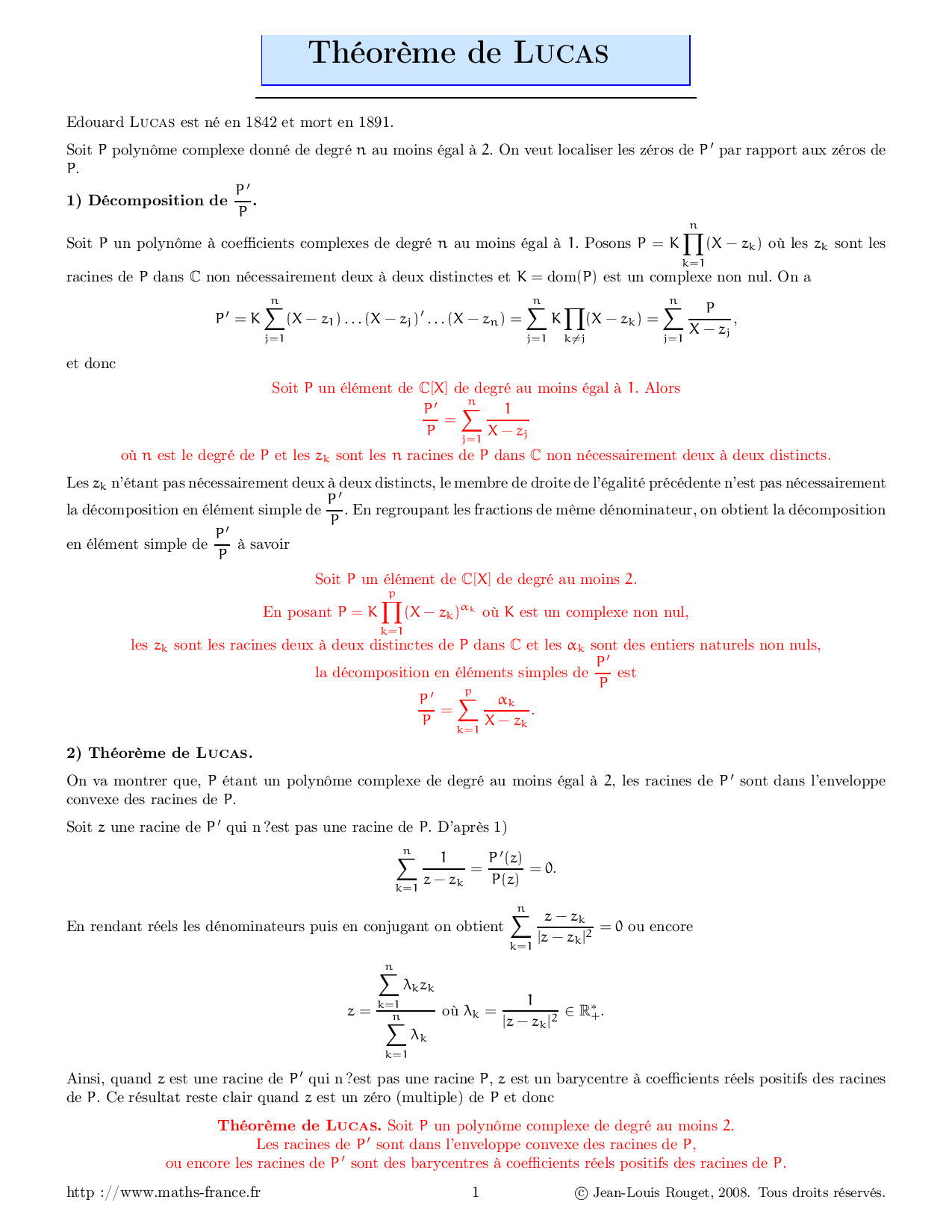 Théorème de Lucas