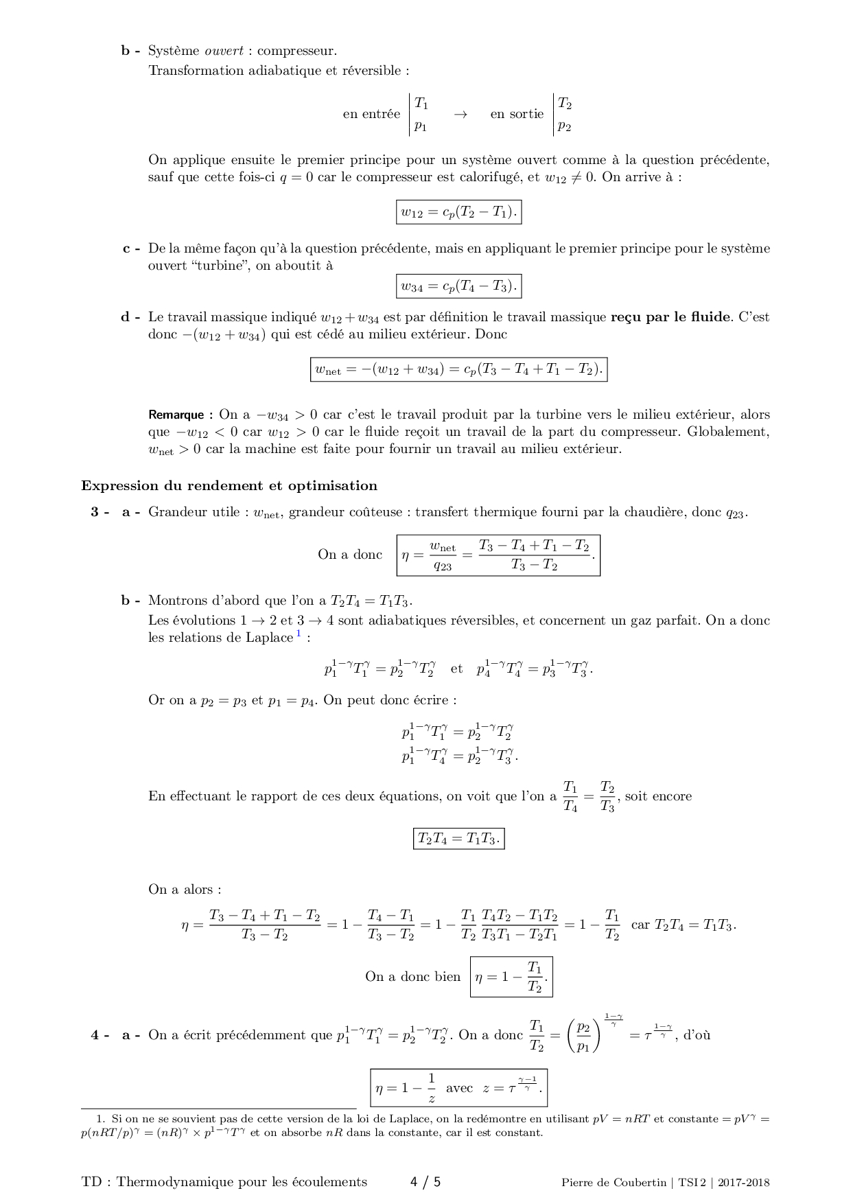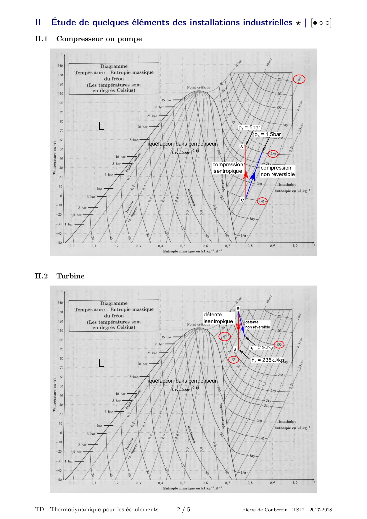 Thermodynamique des systèmes ouverts, applications industrielles : Corrigés