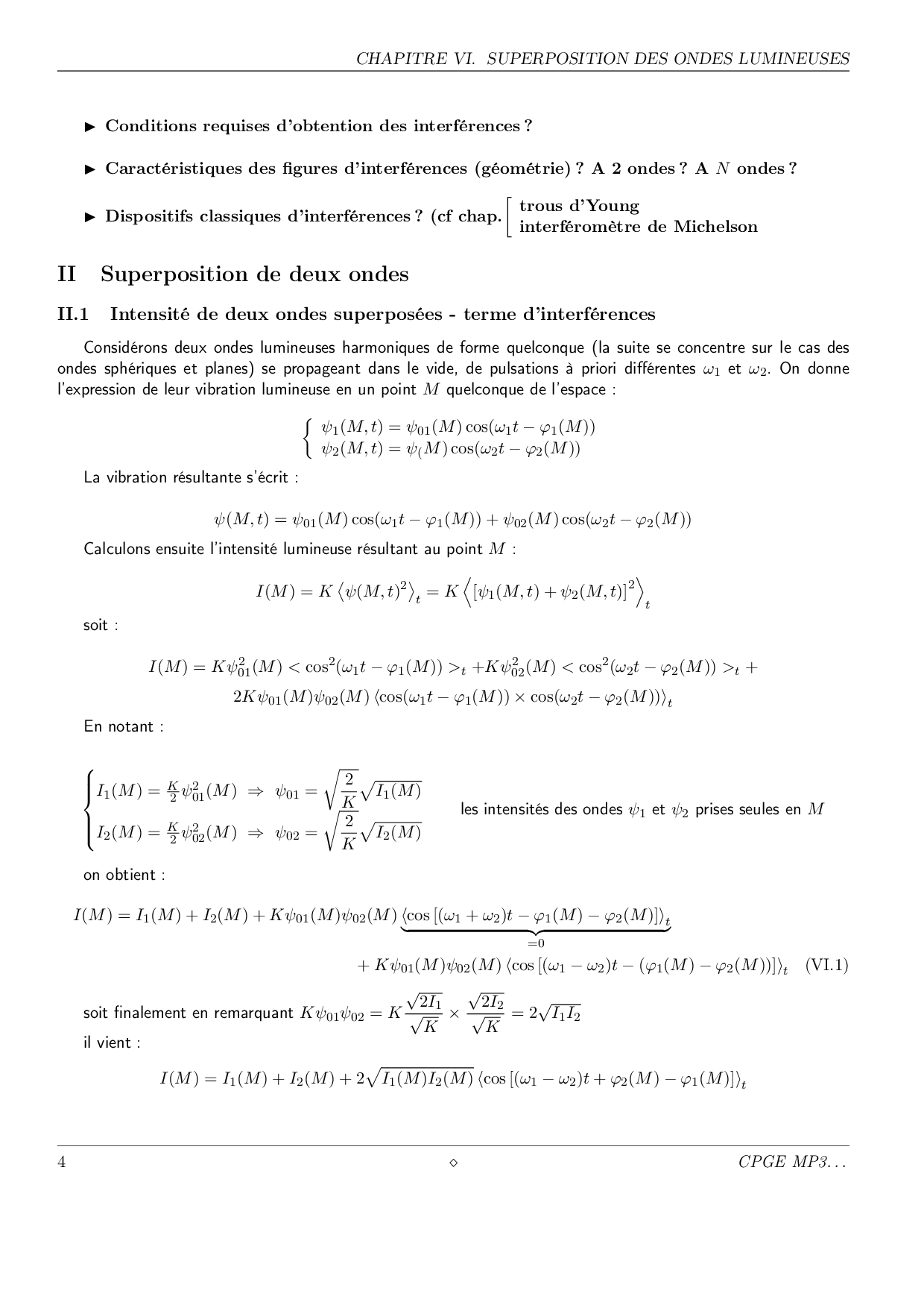 Superposition des ondes lumineuses - Cours