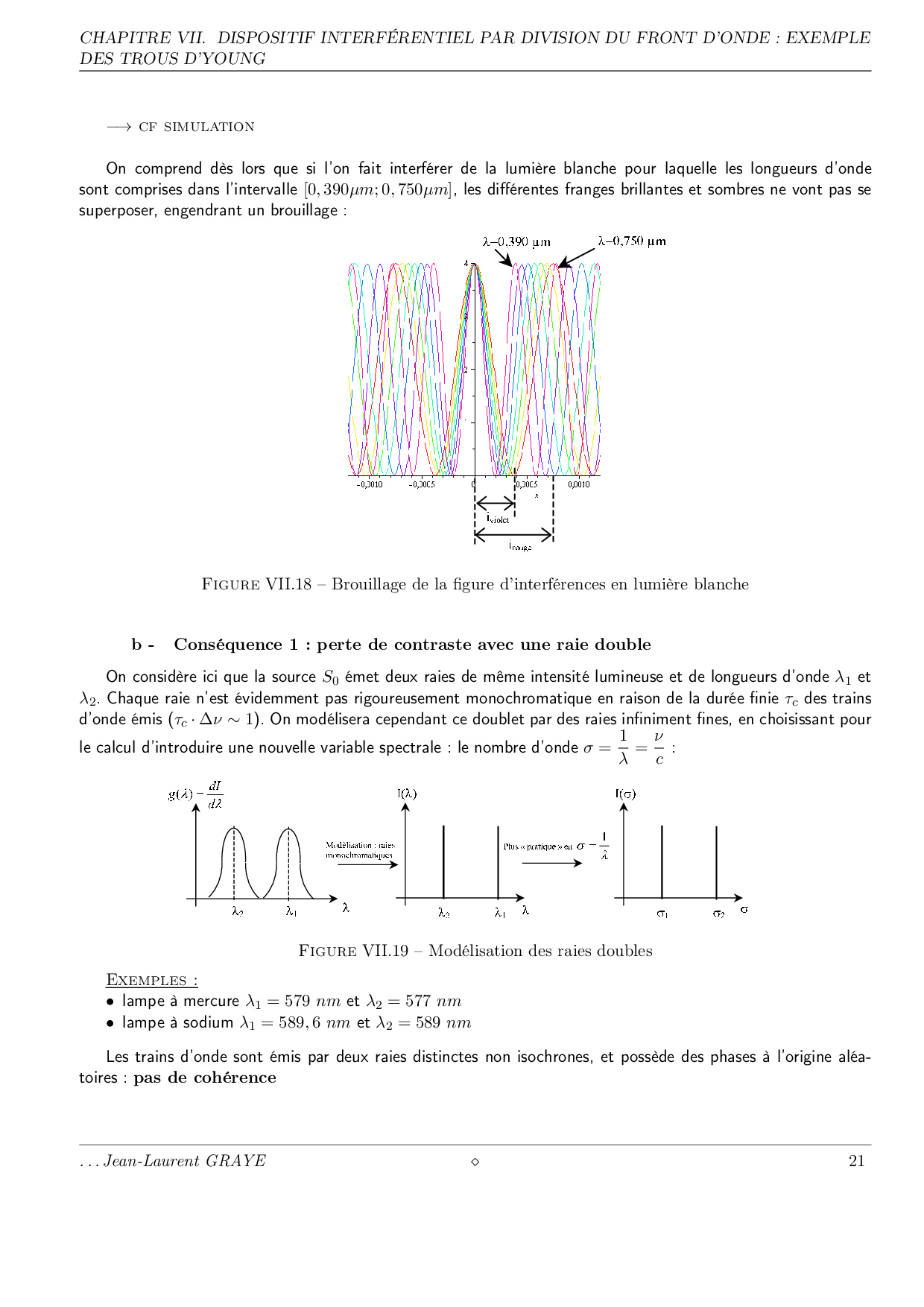 Interférences par division de front d'onde - Trous d'Young - Cours