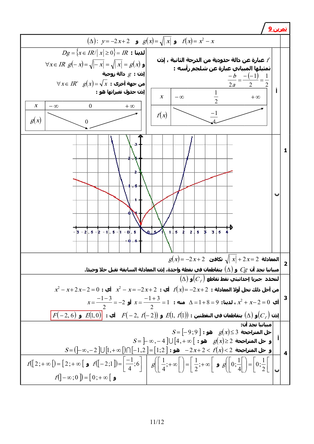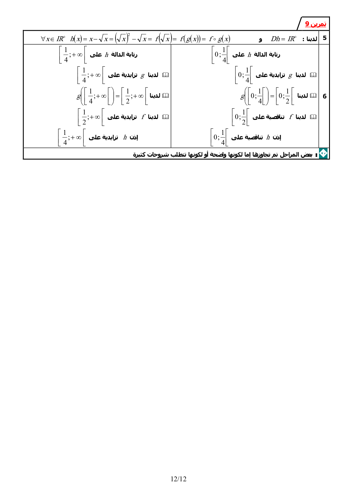 عموميات حول الدوال العددية - تصحيح سلسلة التمارين 3