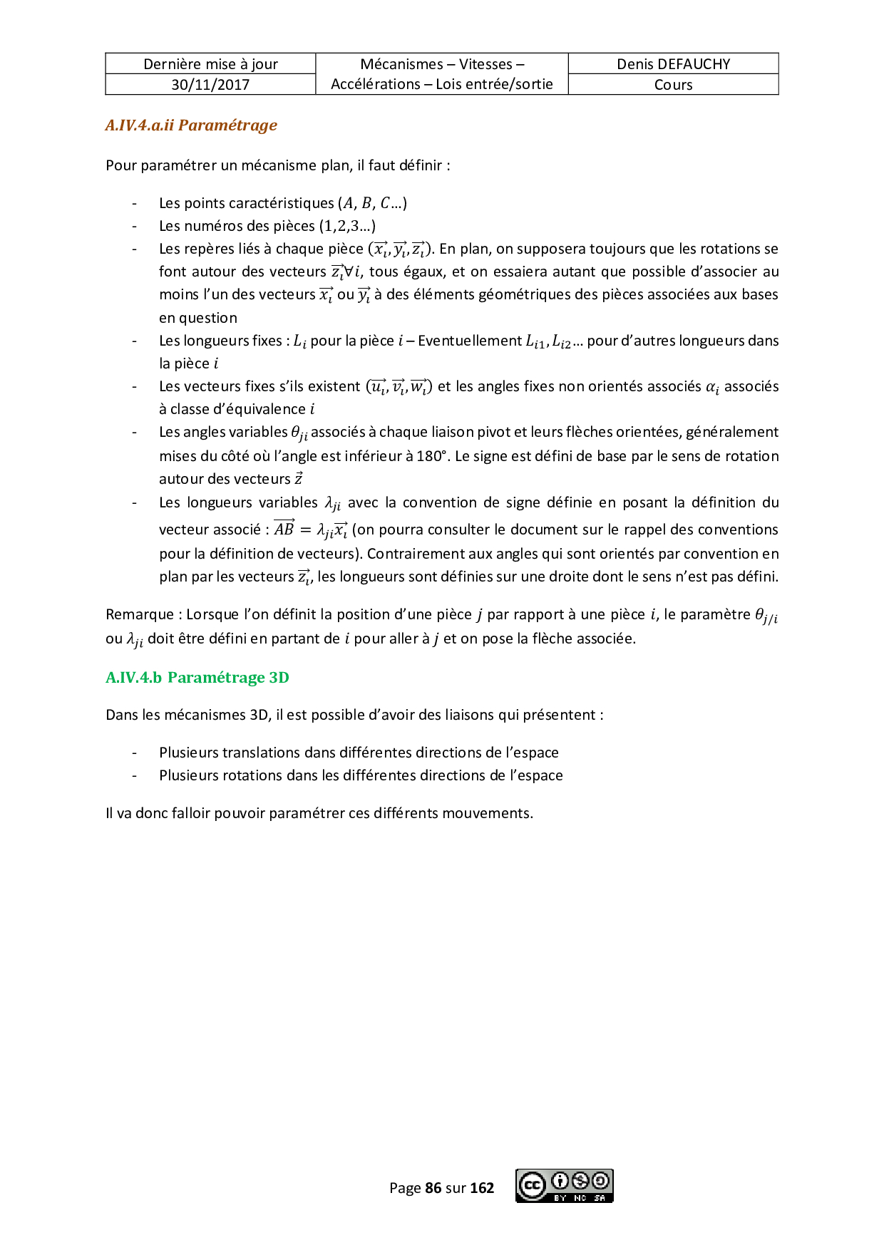 Cours : Modélisation des mécanismes