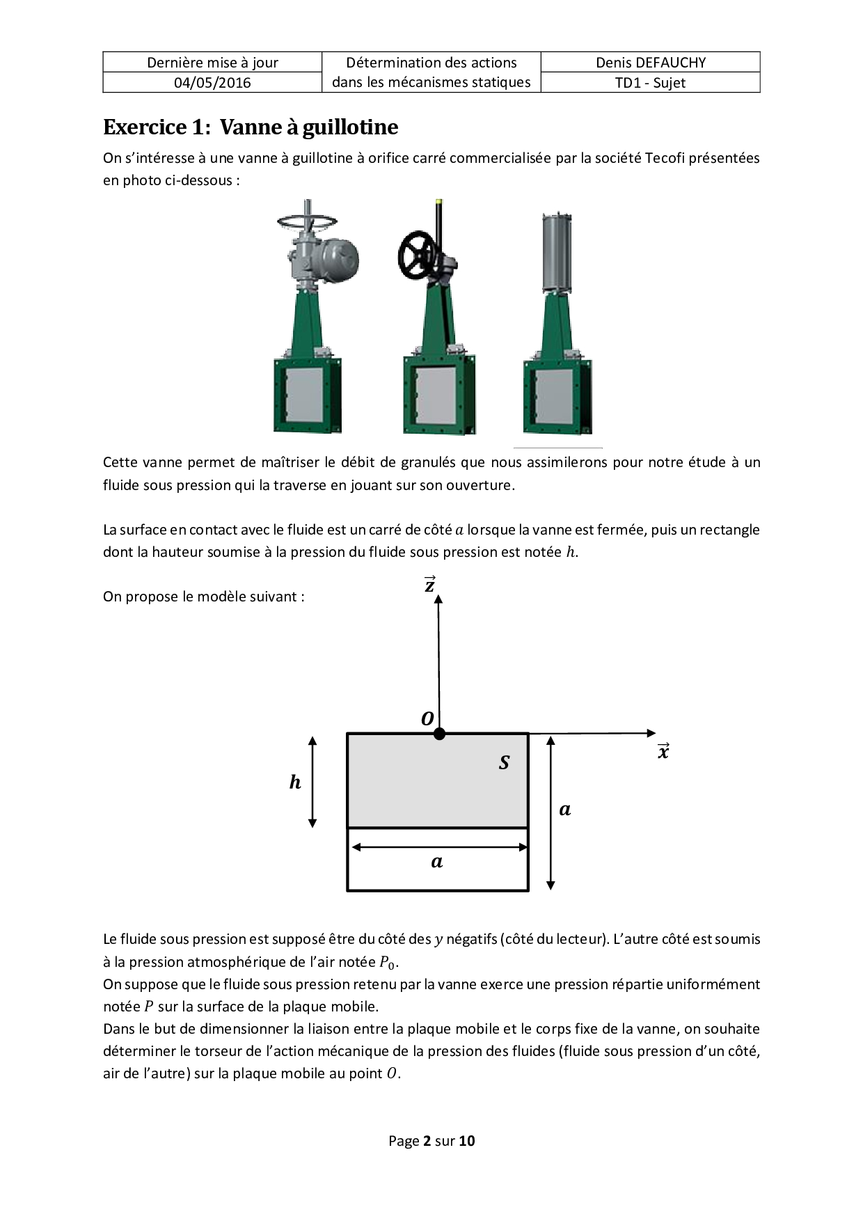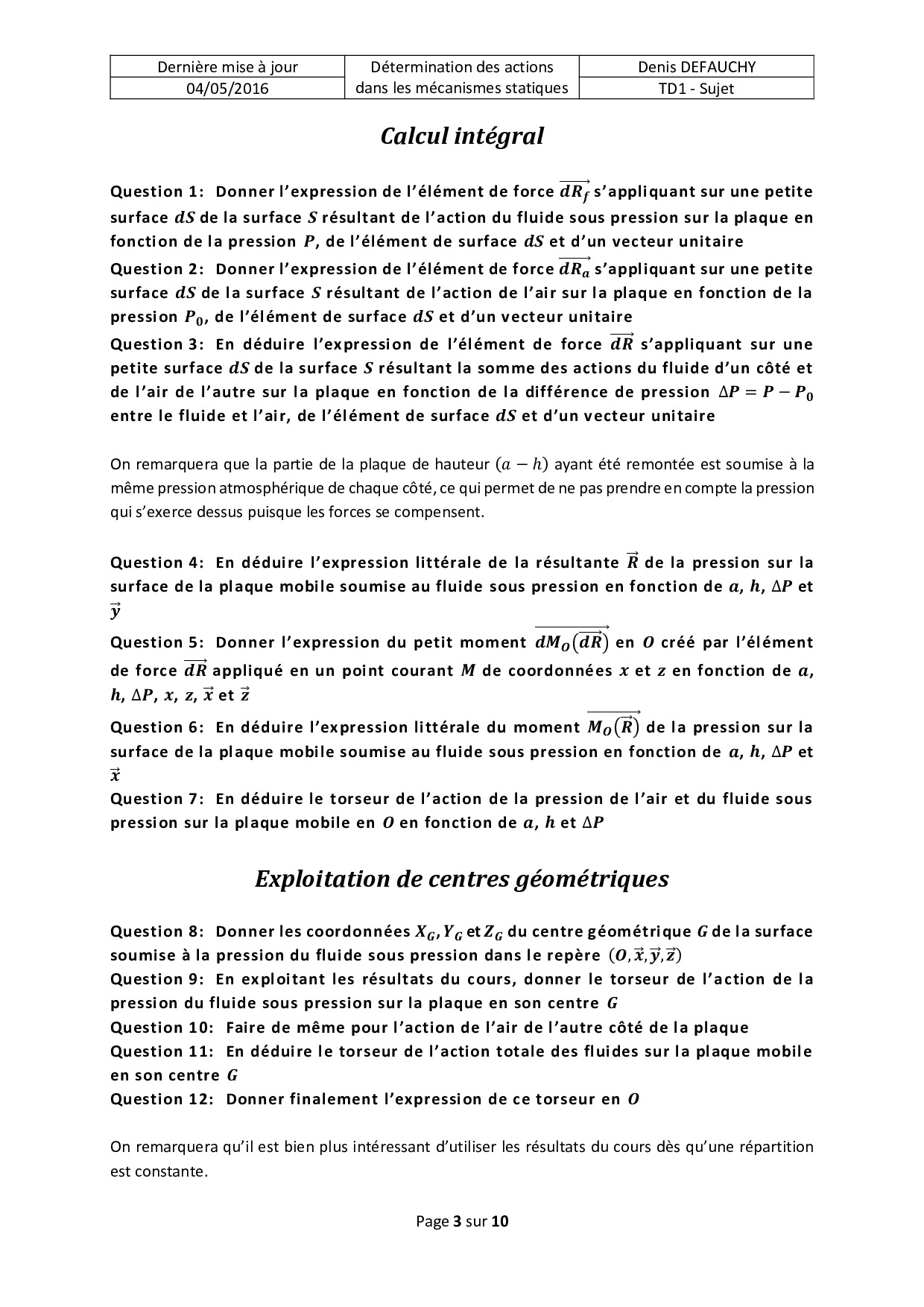 TD1 : Actions mécaniques locales et globales
