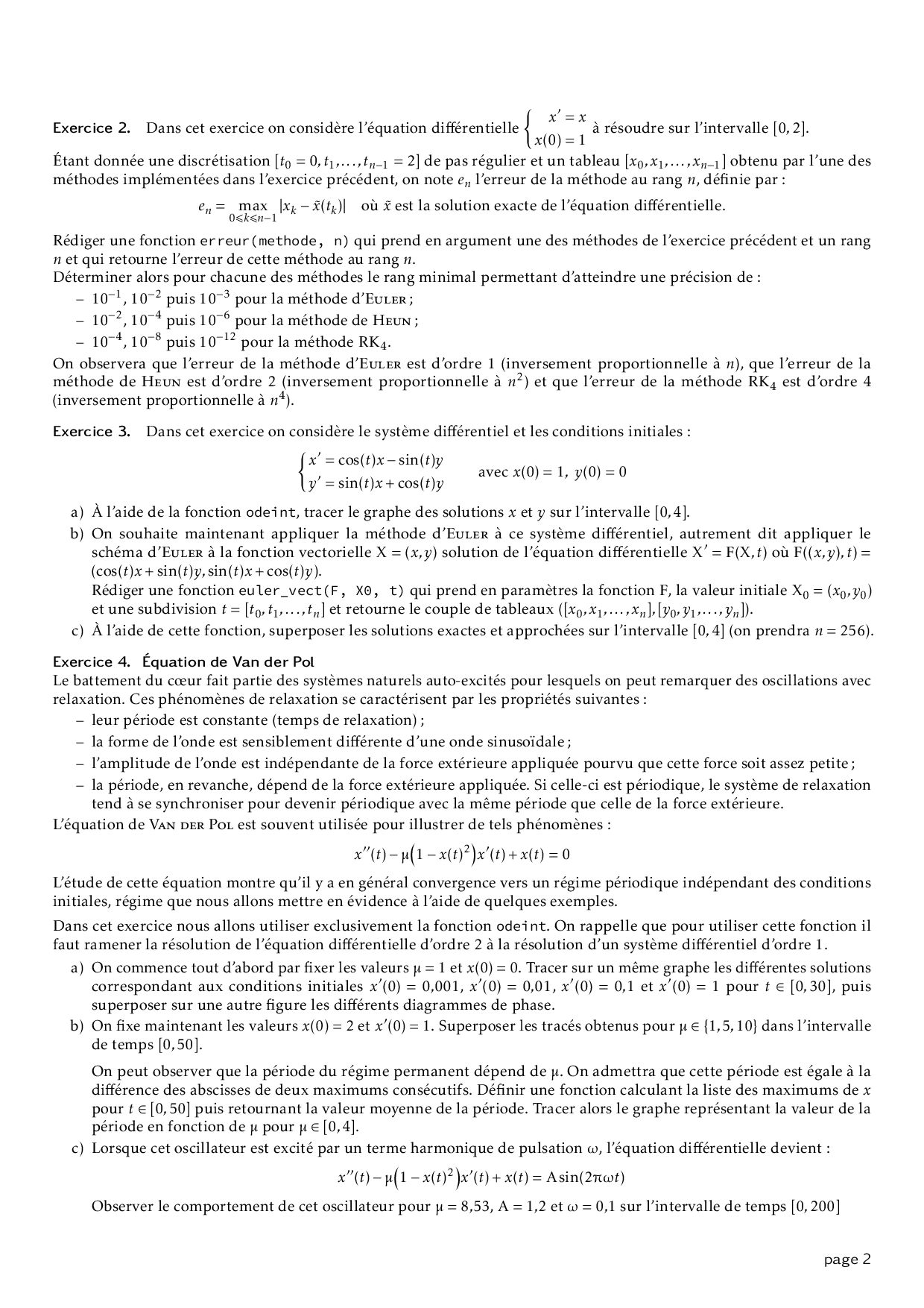 Série 11 - Résolution numérique d'une équation différentielle (Méthode d'Euler) : Exercices