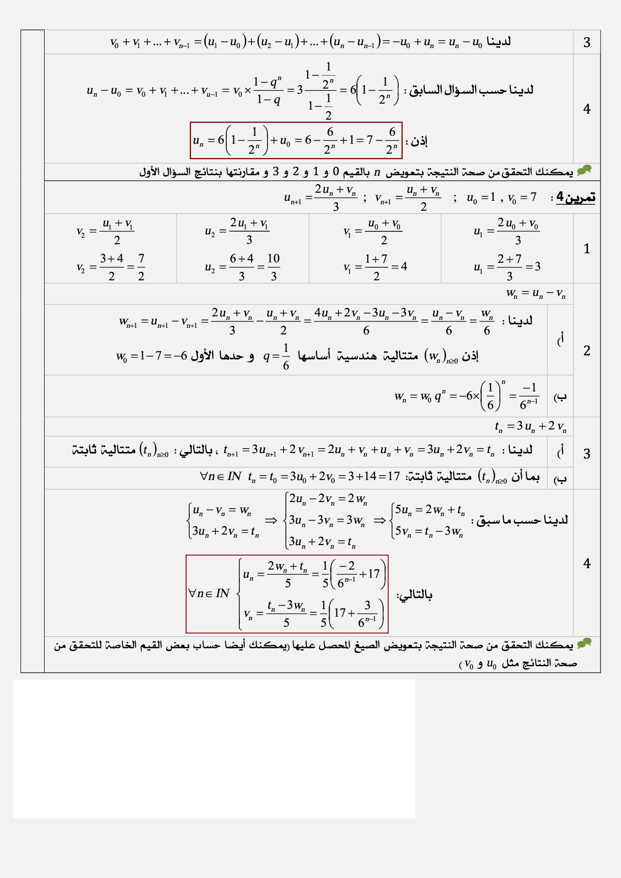 المتتاليات العددية - تصحيح سلسلة التمارين 3