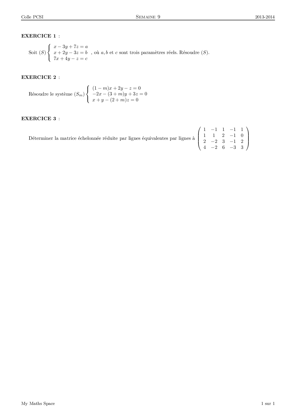 Systèmes linéaires : Exercices