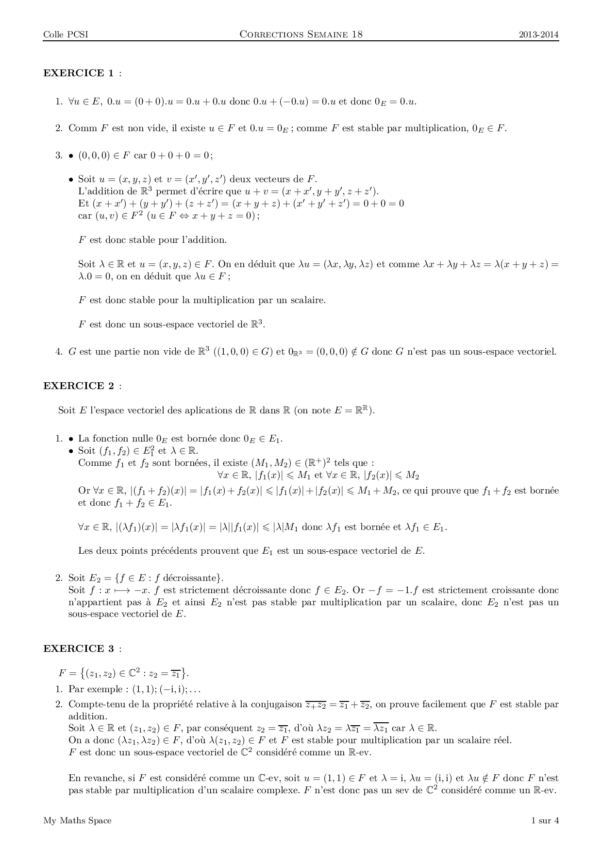 Continuité sur un intervalle - Espaces vectoriels et dimension finie : Corrigés