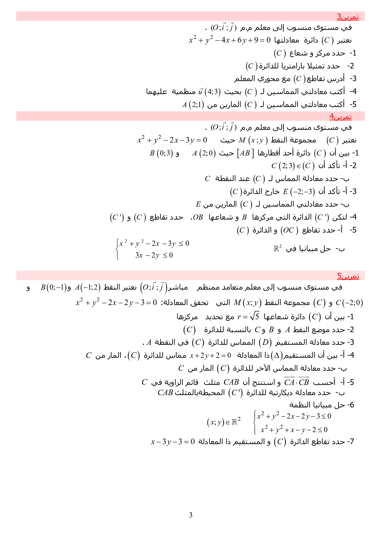 تحليلية الجداء السلمي وتطبيقاته - تمارين غير محلولة 1