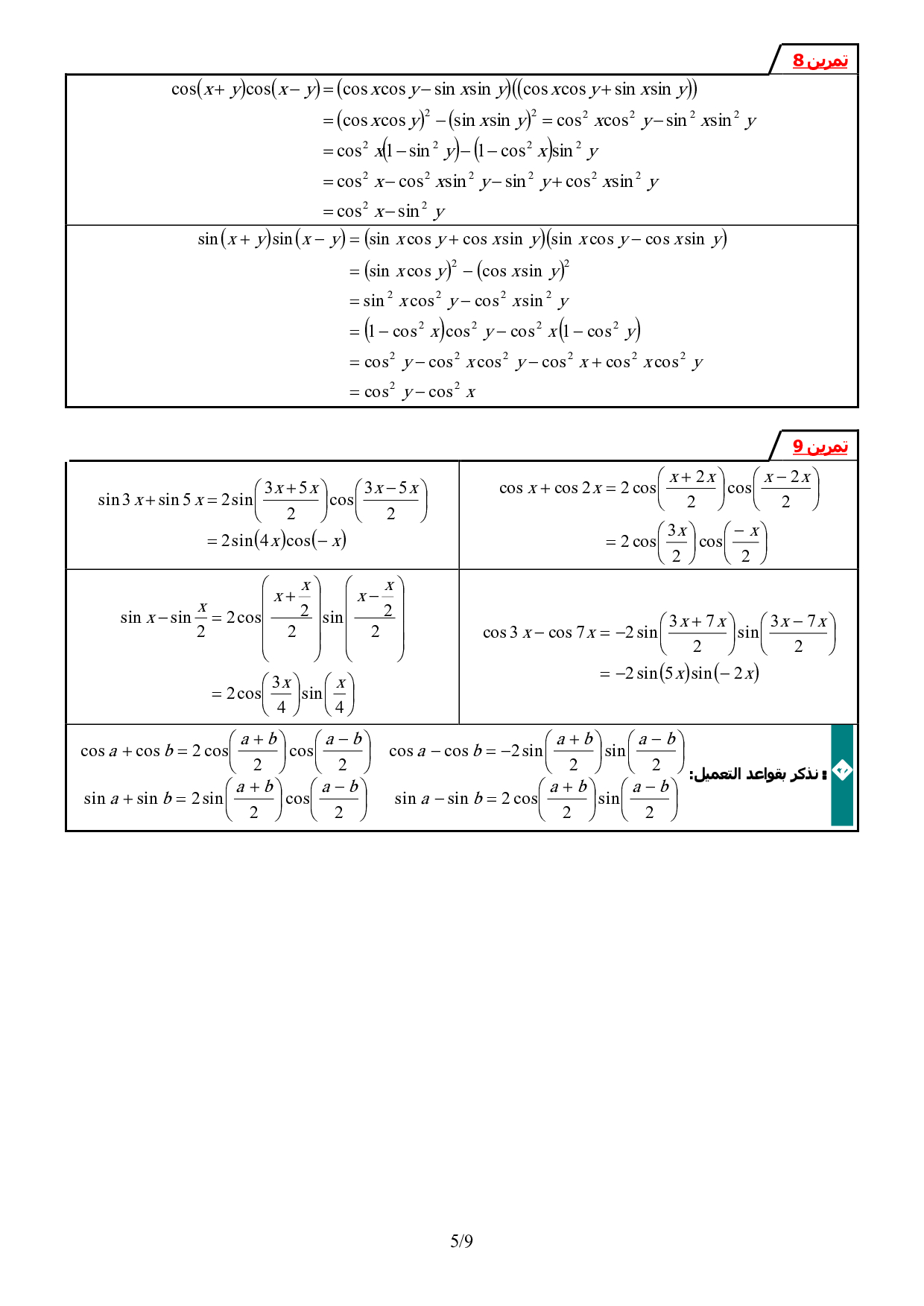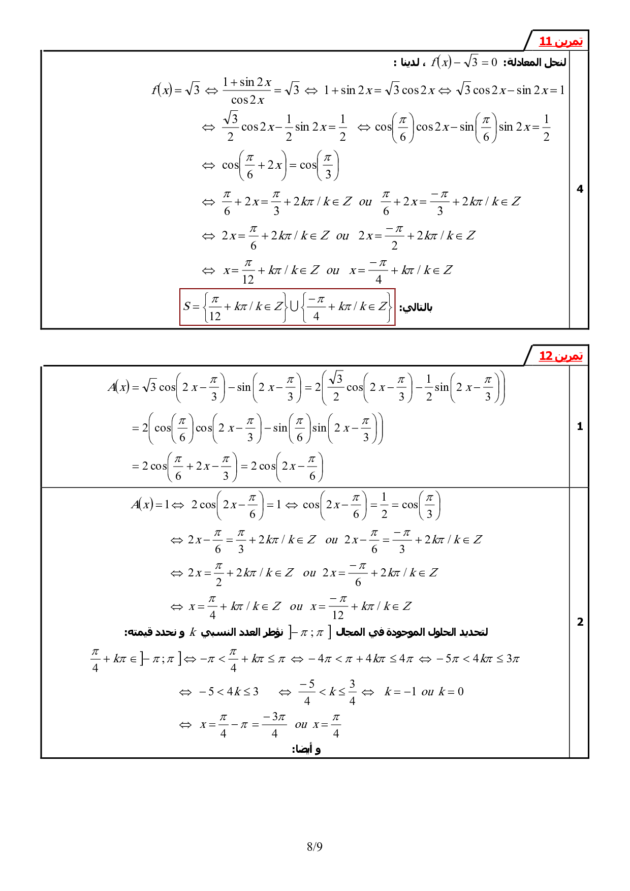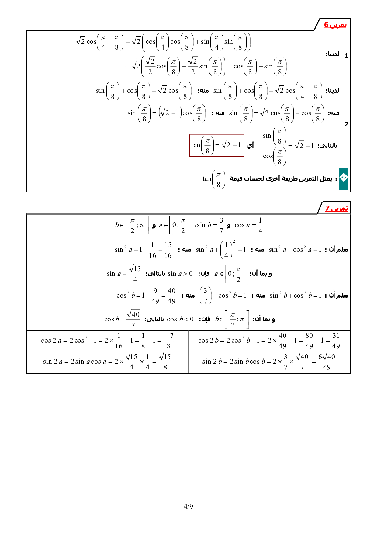 الحساب المثلثي - تصحيح سلسلة التمارين 4