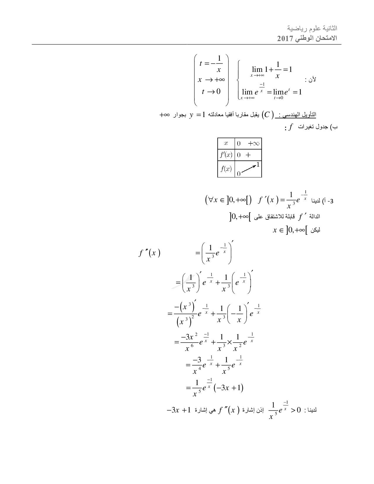 الرياضيات علوم رياضية 2017 الدورة العادية - التصحيح