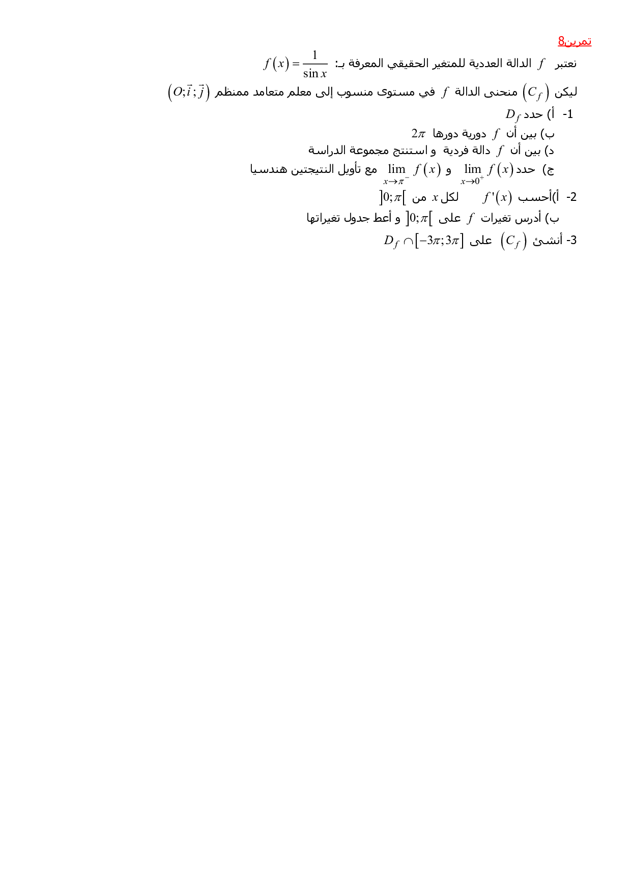 دراسة الدوال وتمثيلها المبياني - تمارين غير محلولة 1