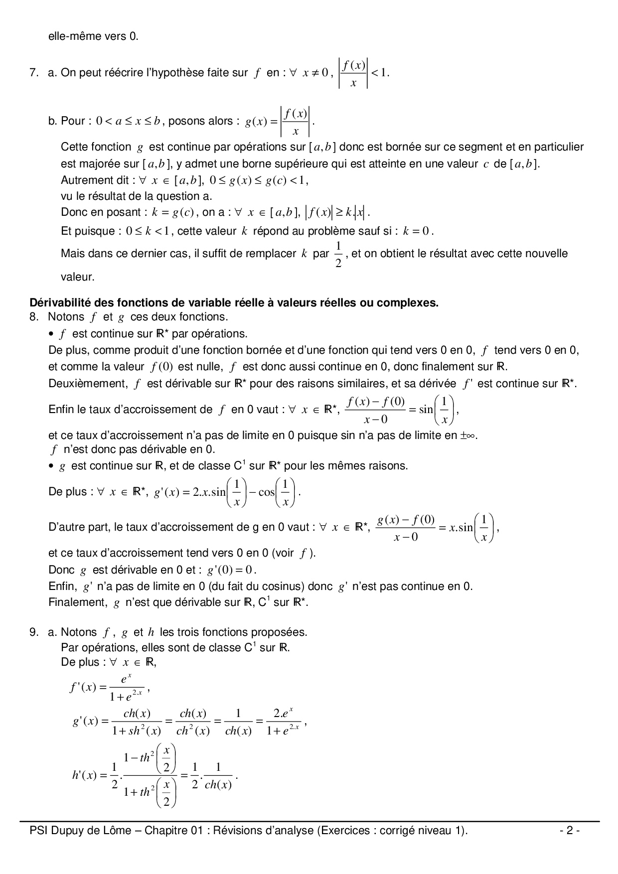 Révisions d’analyse : Corrigé niveau 1