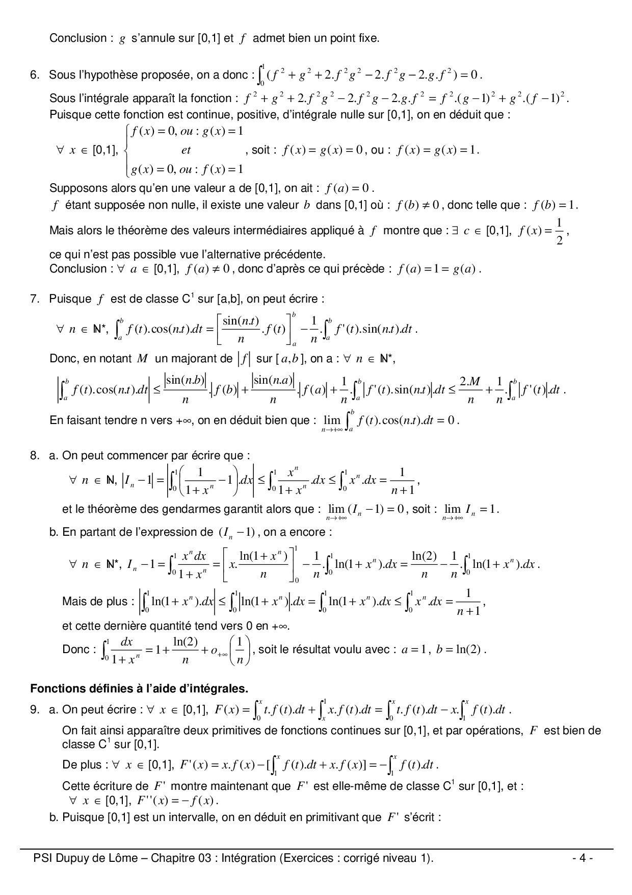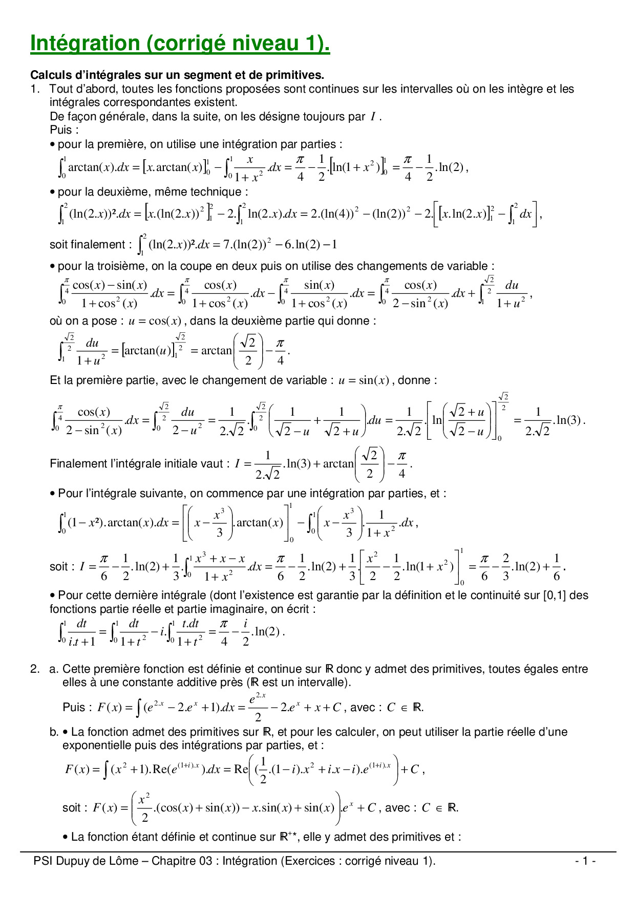 Intégration : Corrigé niveau 1