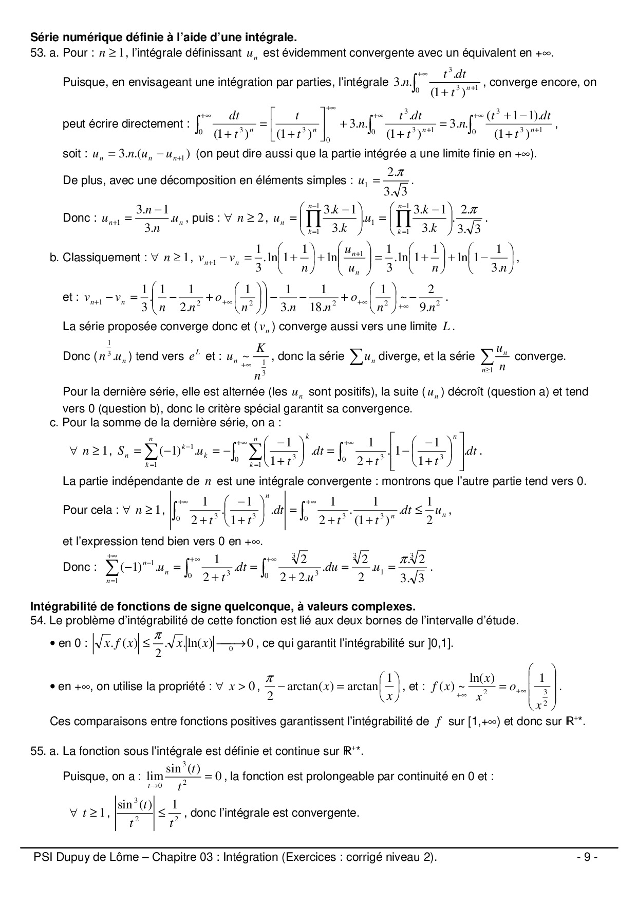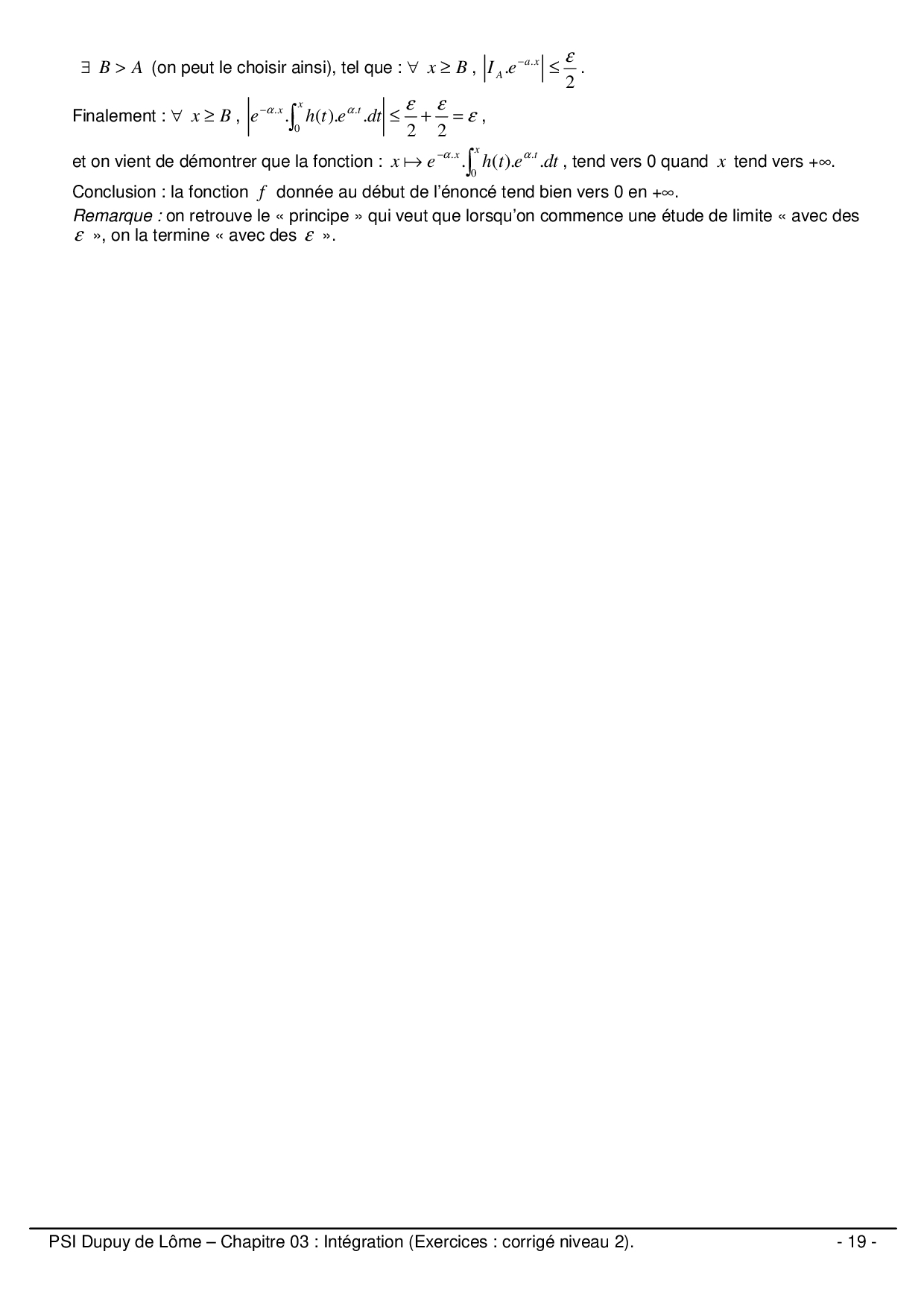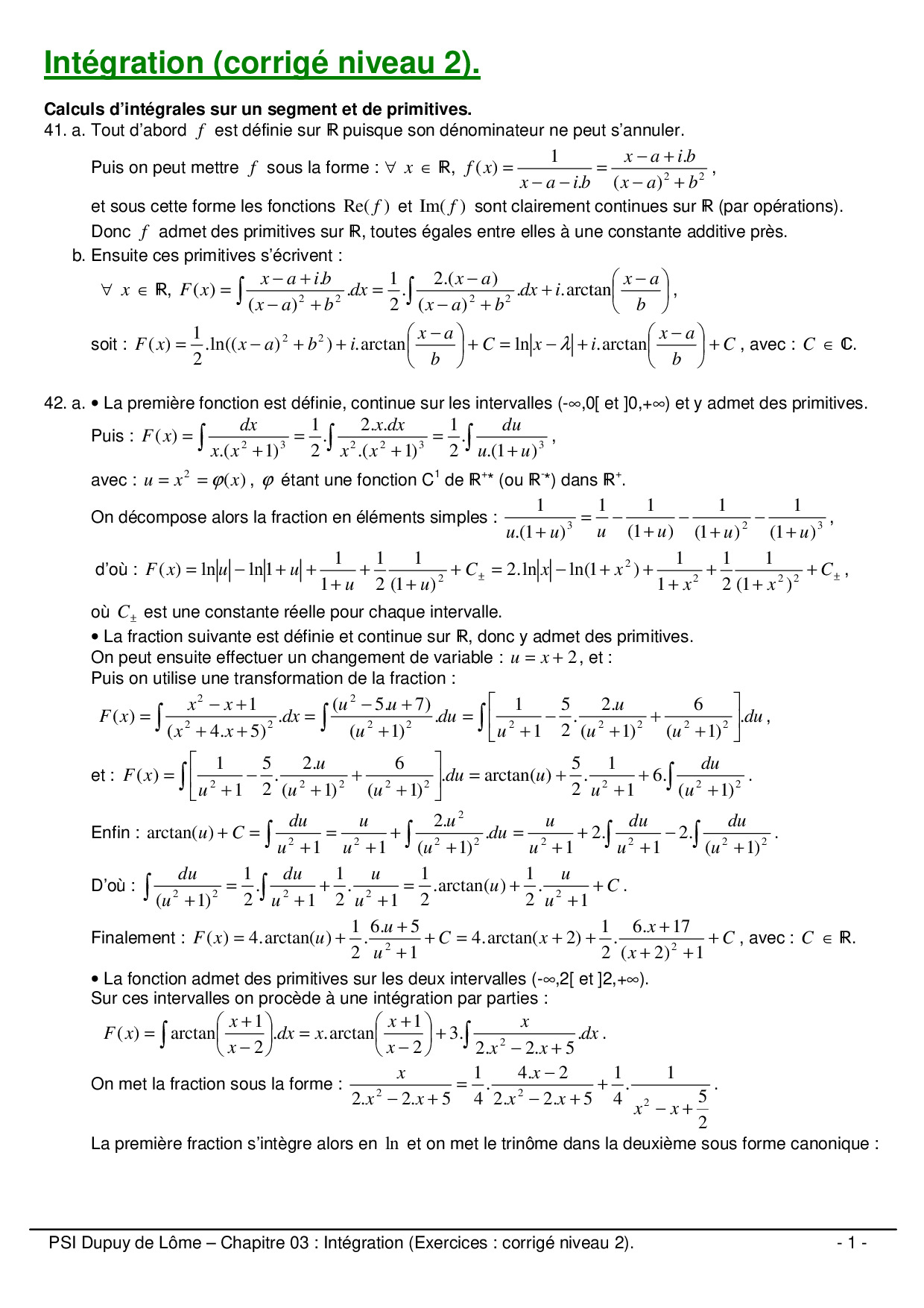 Intégration : Corrigé niveau 2