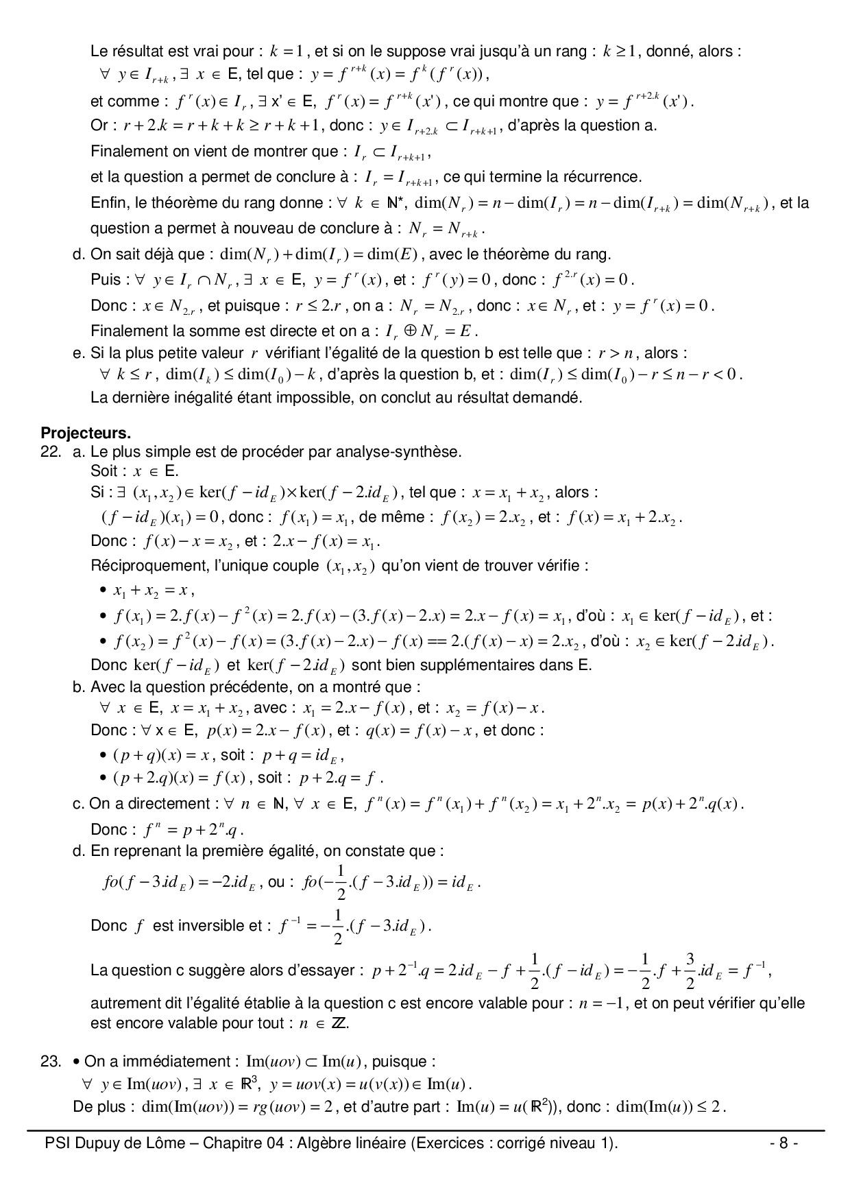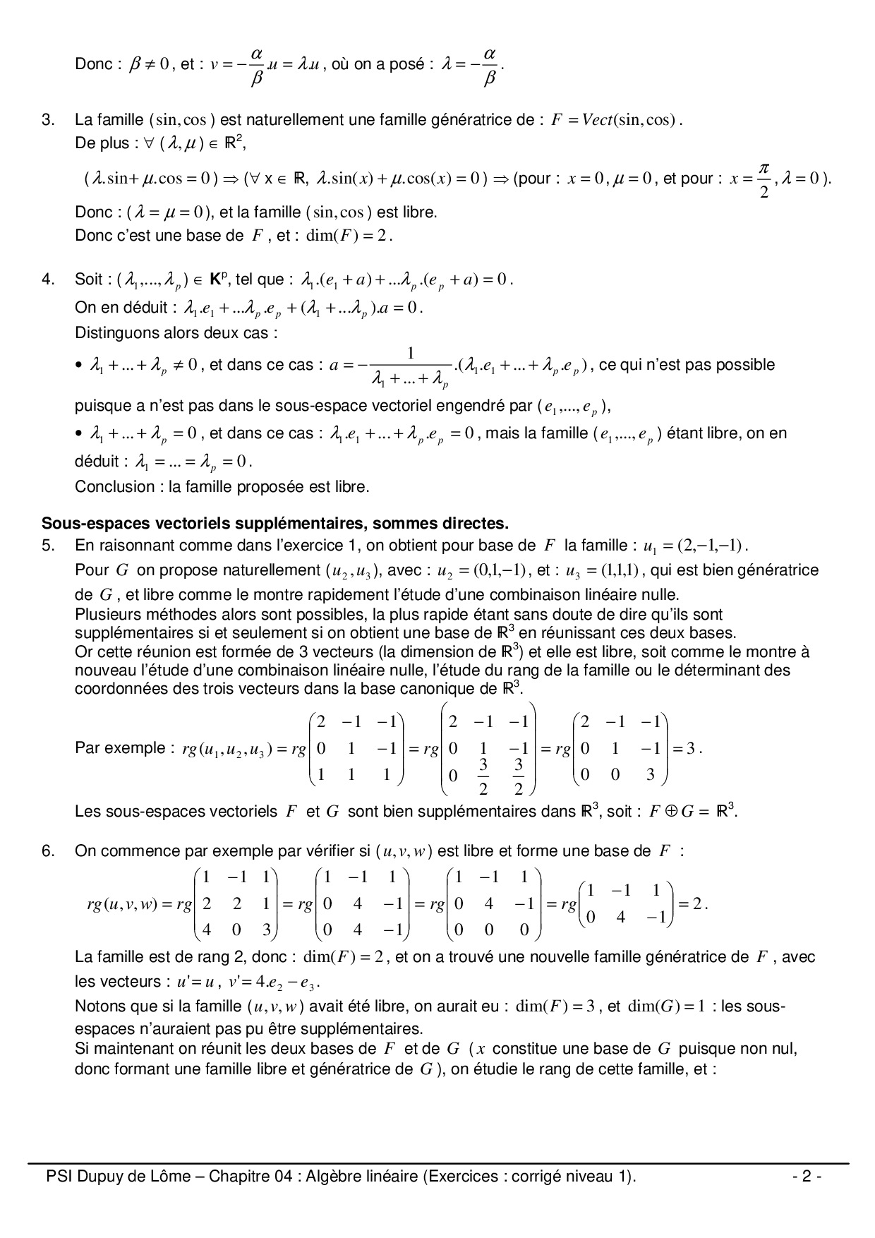 Compléments sur les espaces vectoriels, les endomorphismes et les matrices