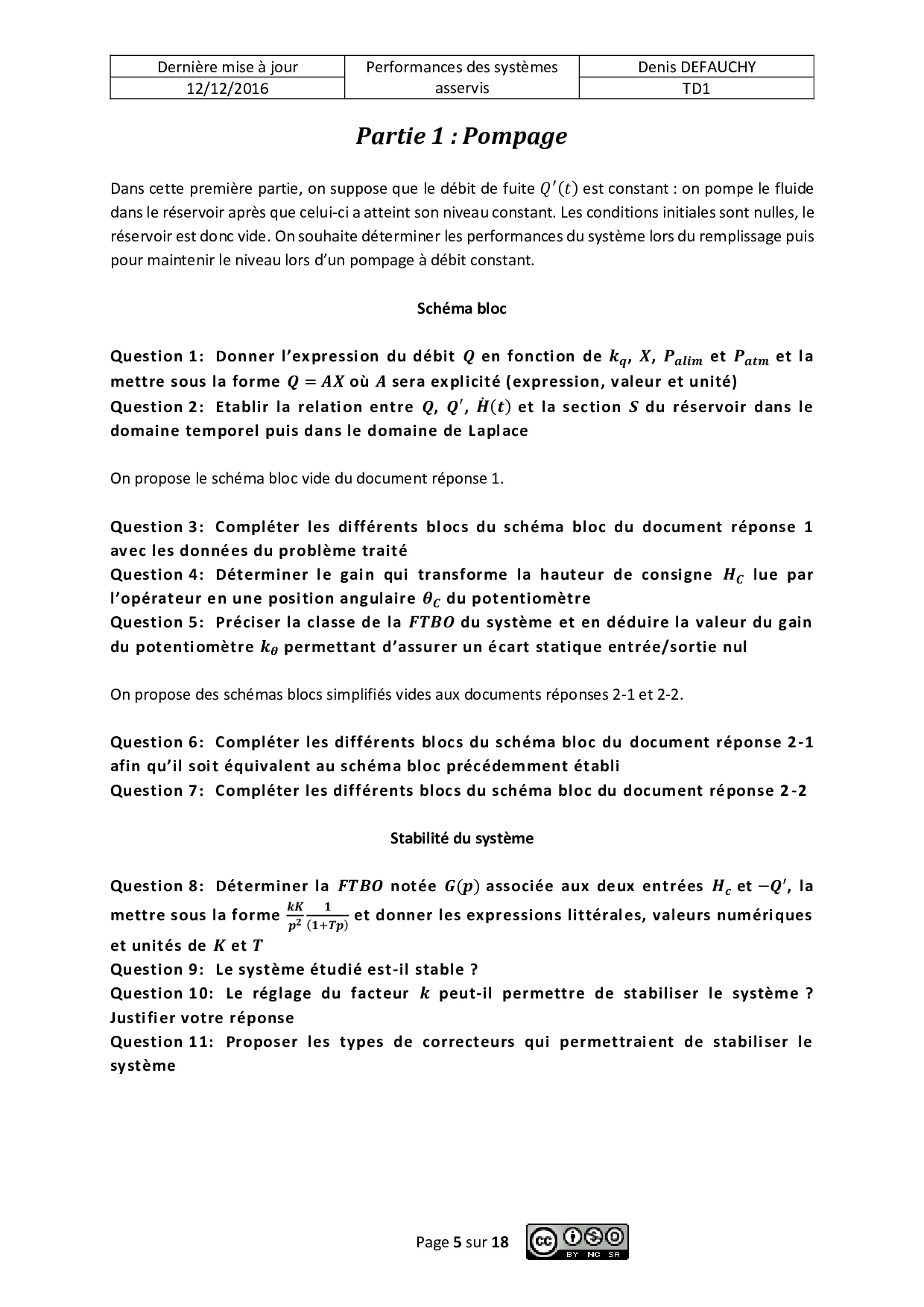 TD : Linéarisation autour d’un point de fonctionnement (Régulation de niveau)