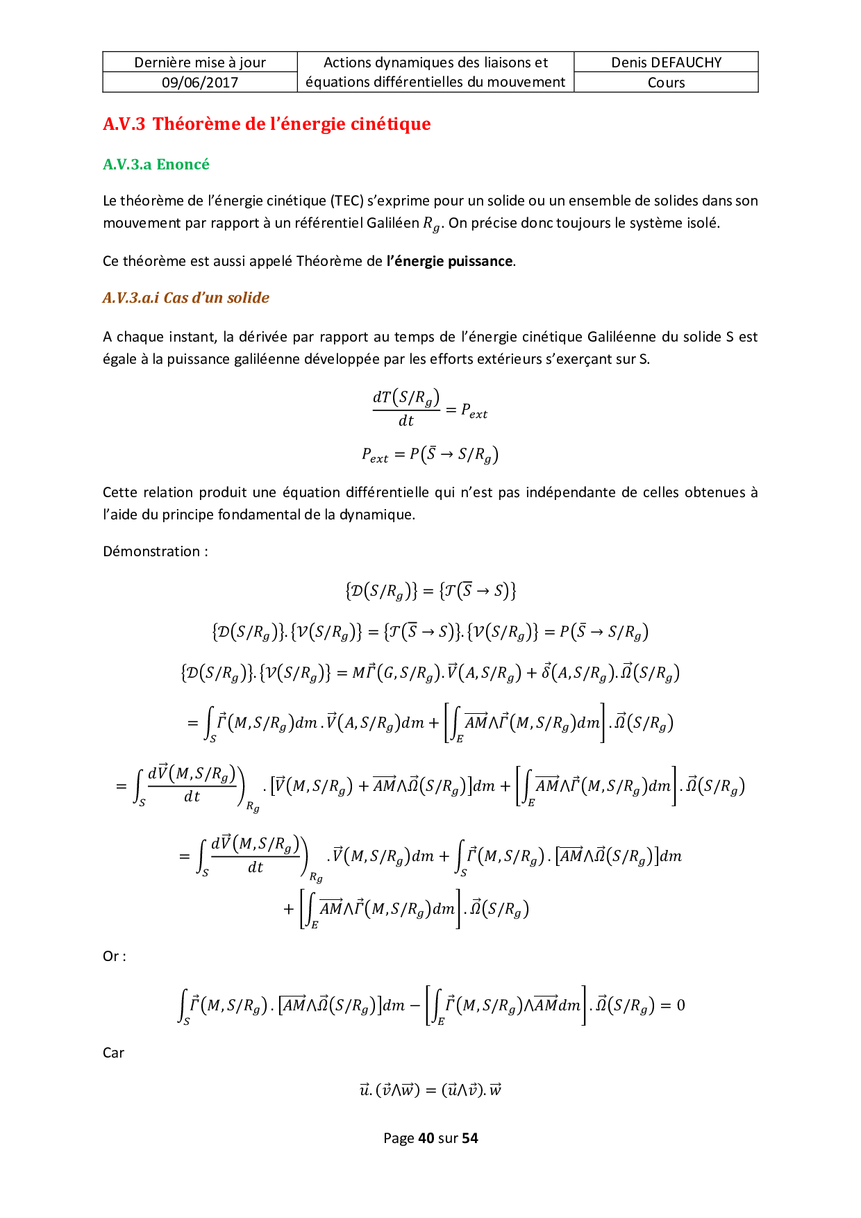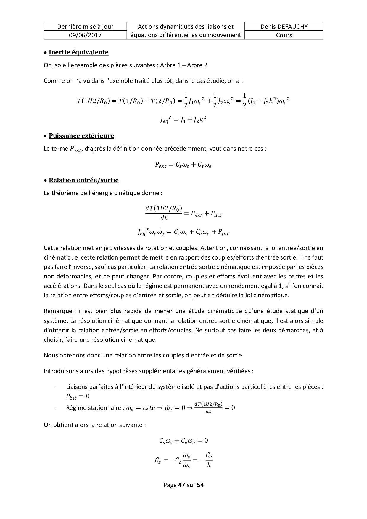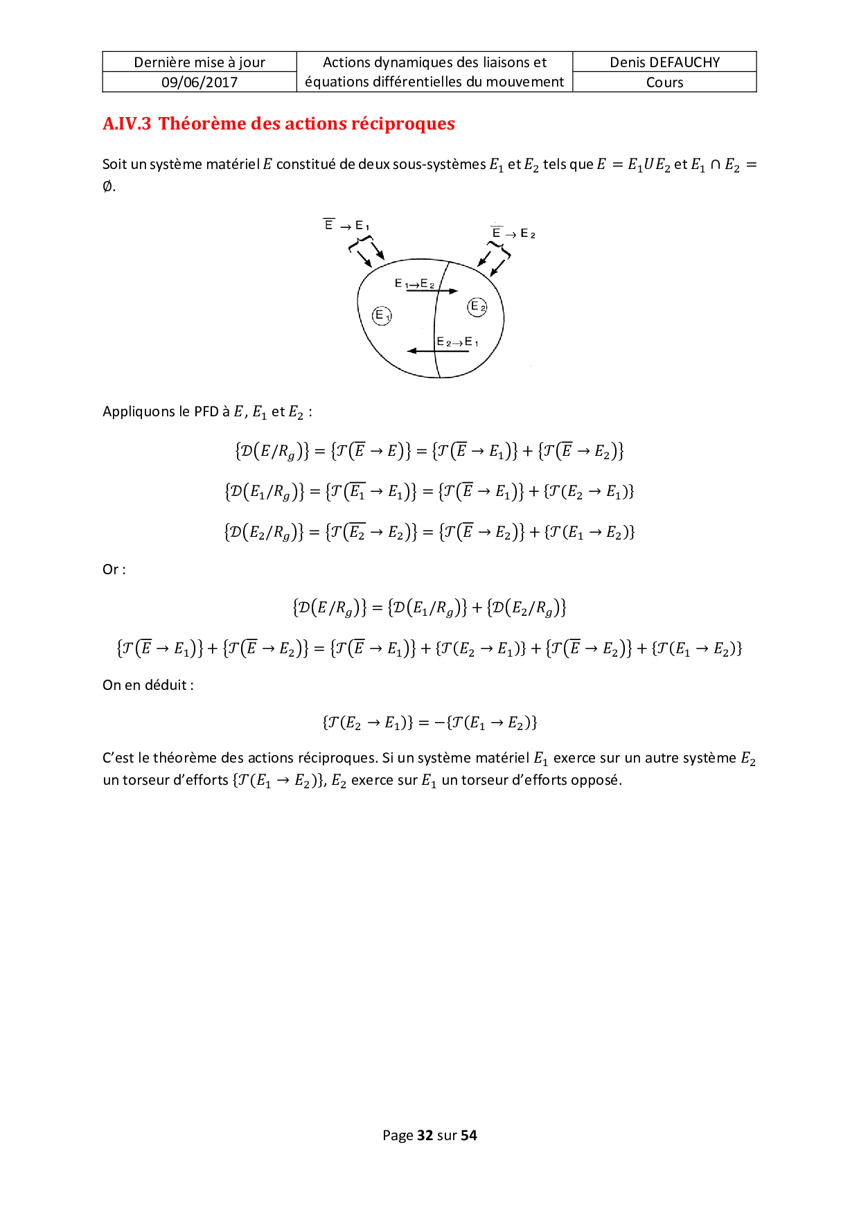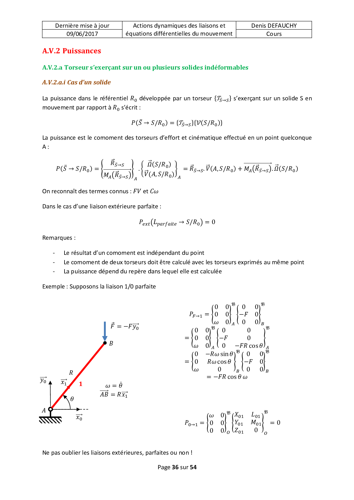 Cours complet : Actions dynamiques des liaisons et équations différentielles du mouvement