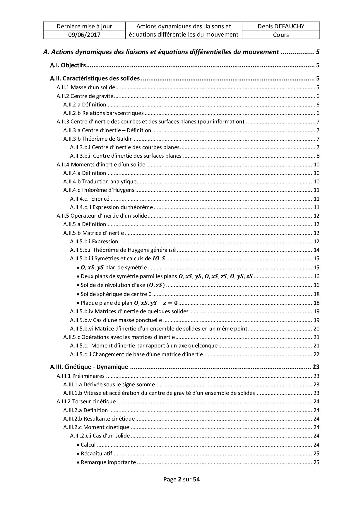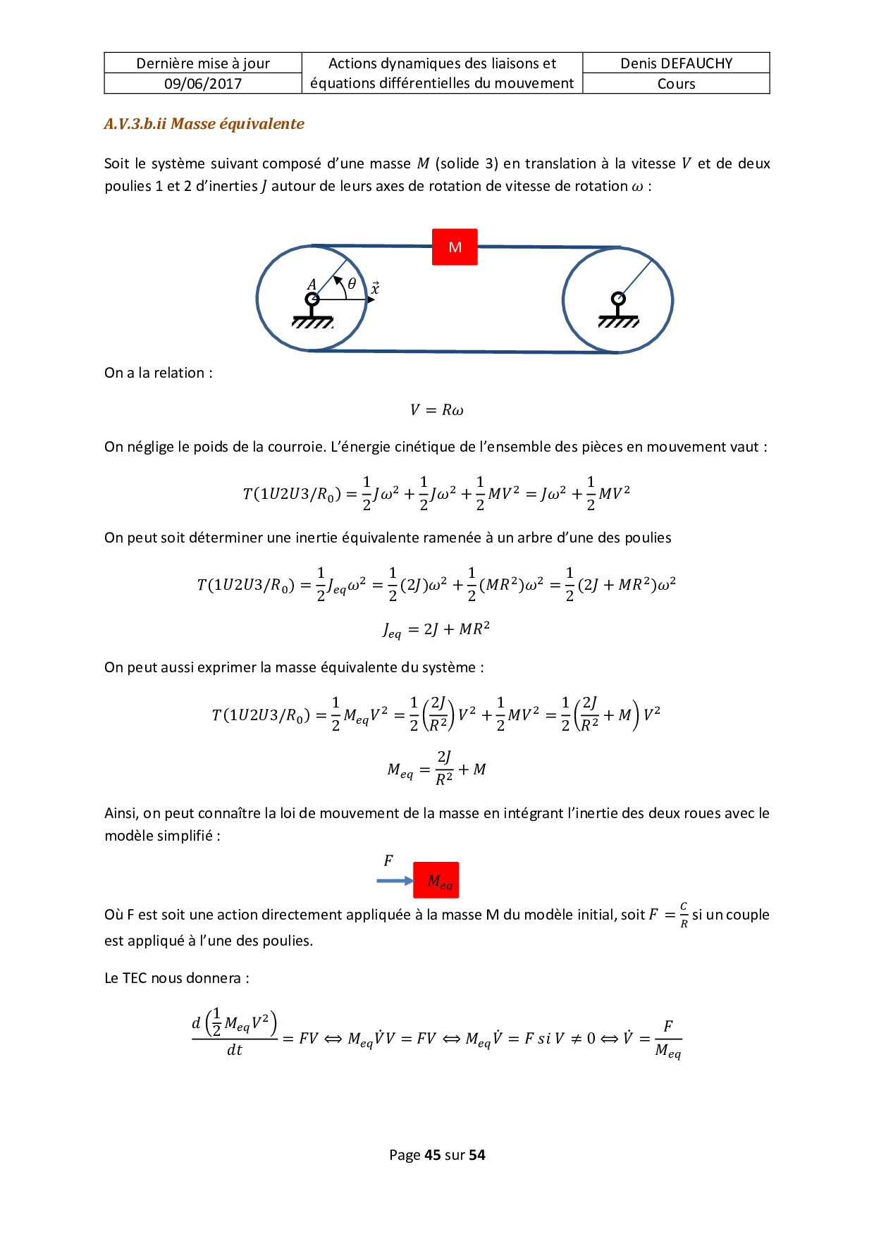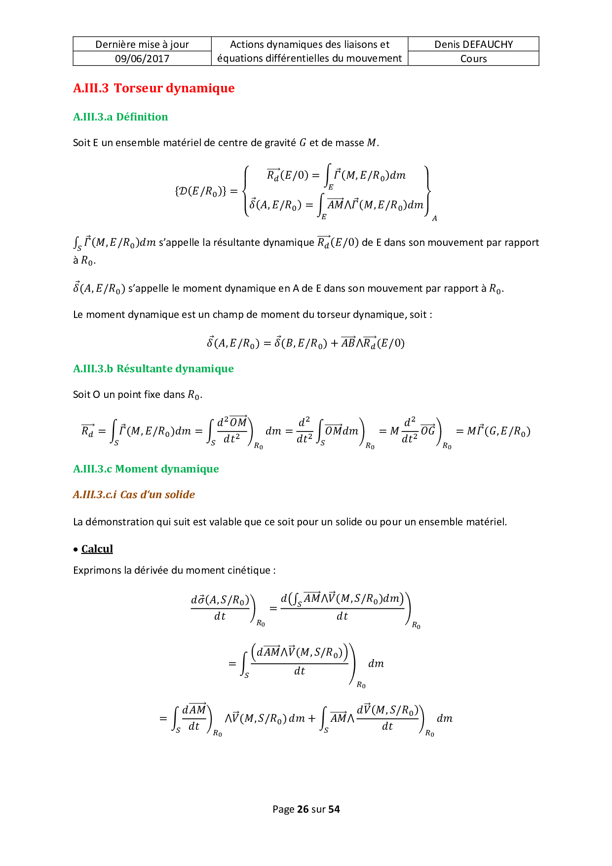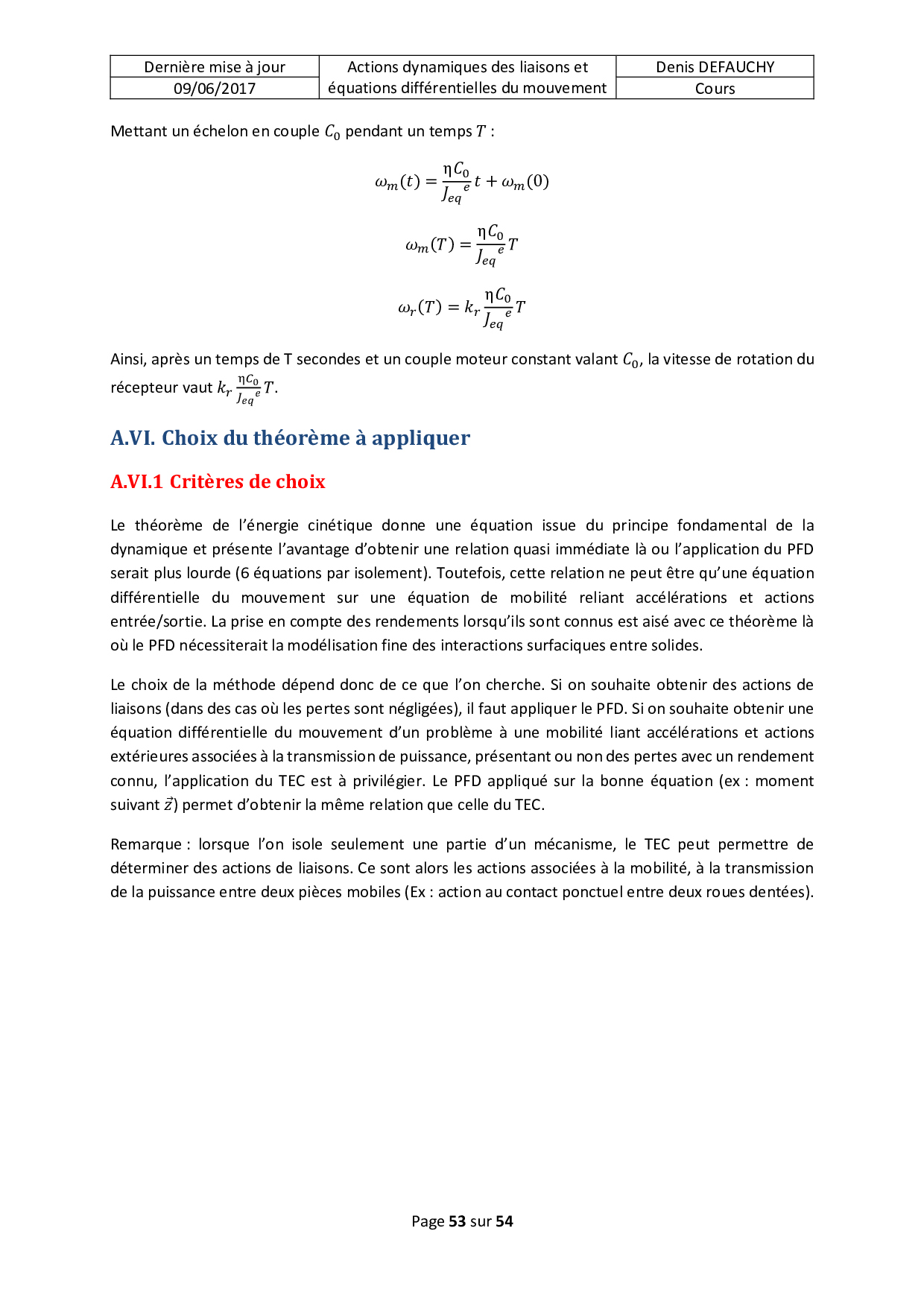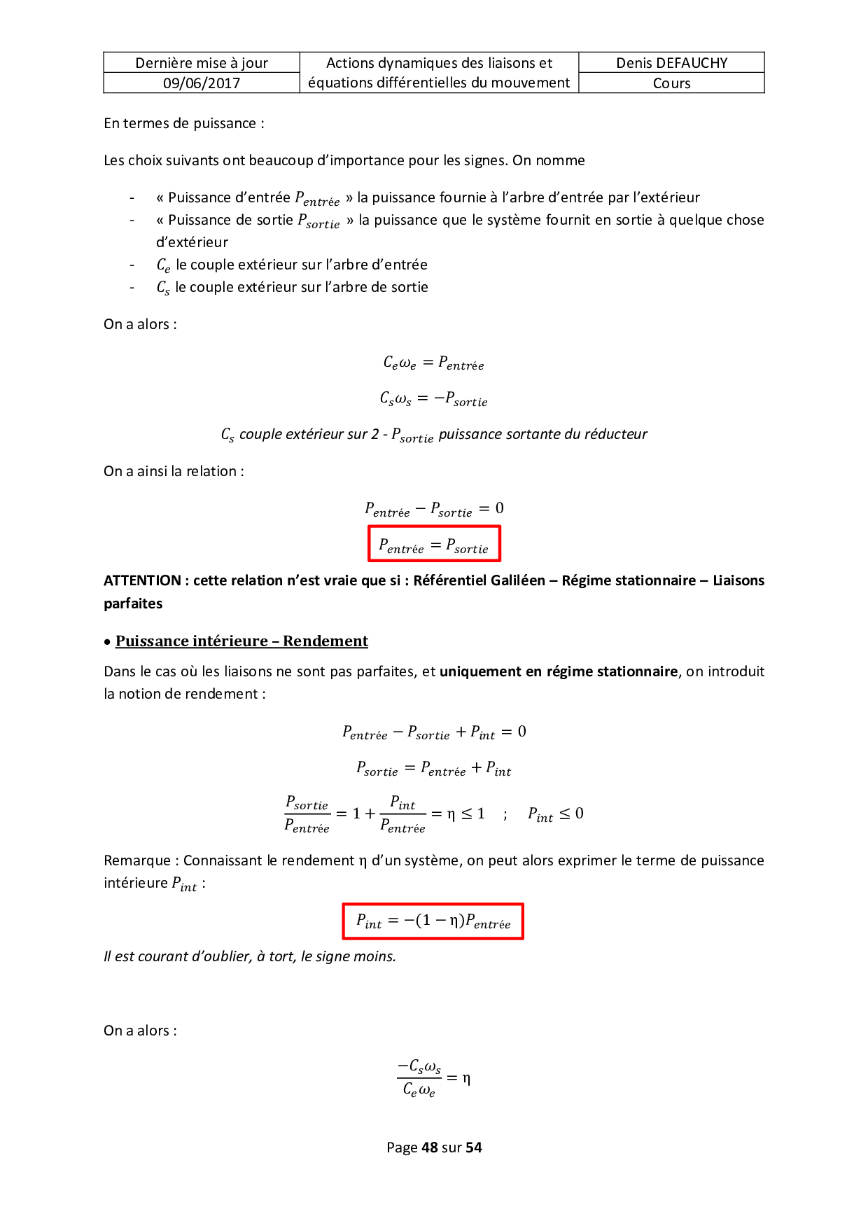 Cours complet : Actions dynamiques des liaisons et équations différentielles du mouvement