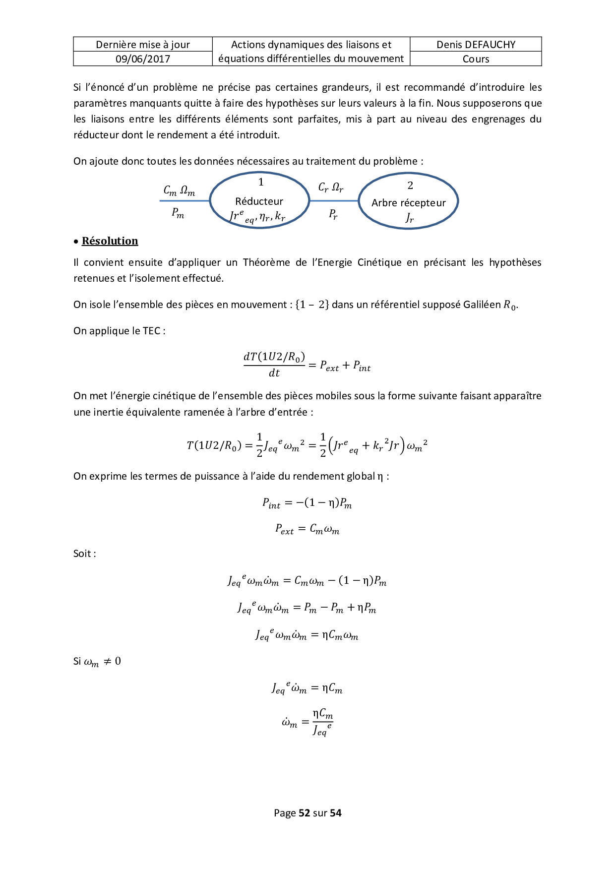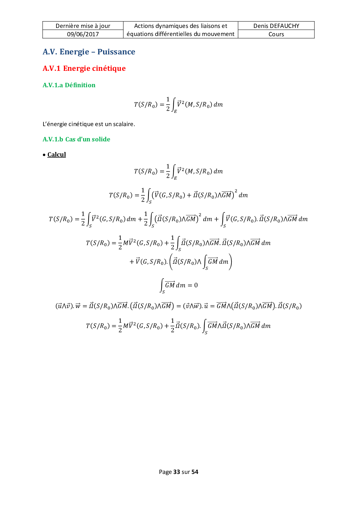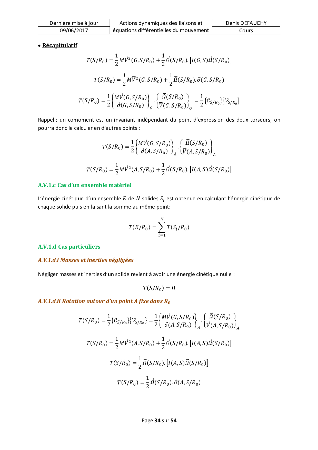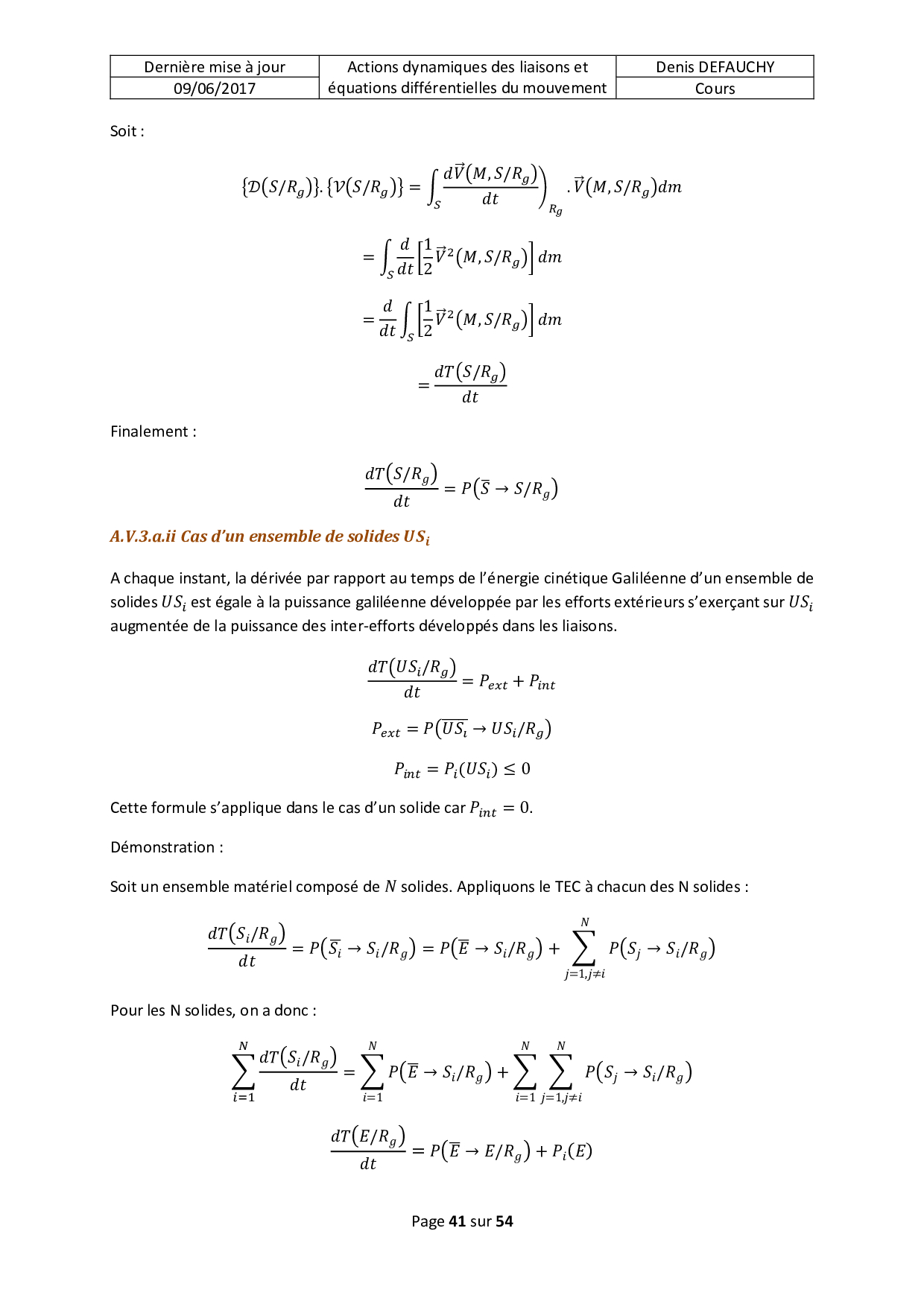 Cours complet : Actions dynamiques des liaisons et équations différentielles du mouvement