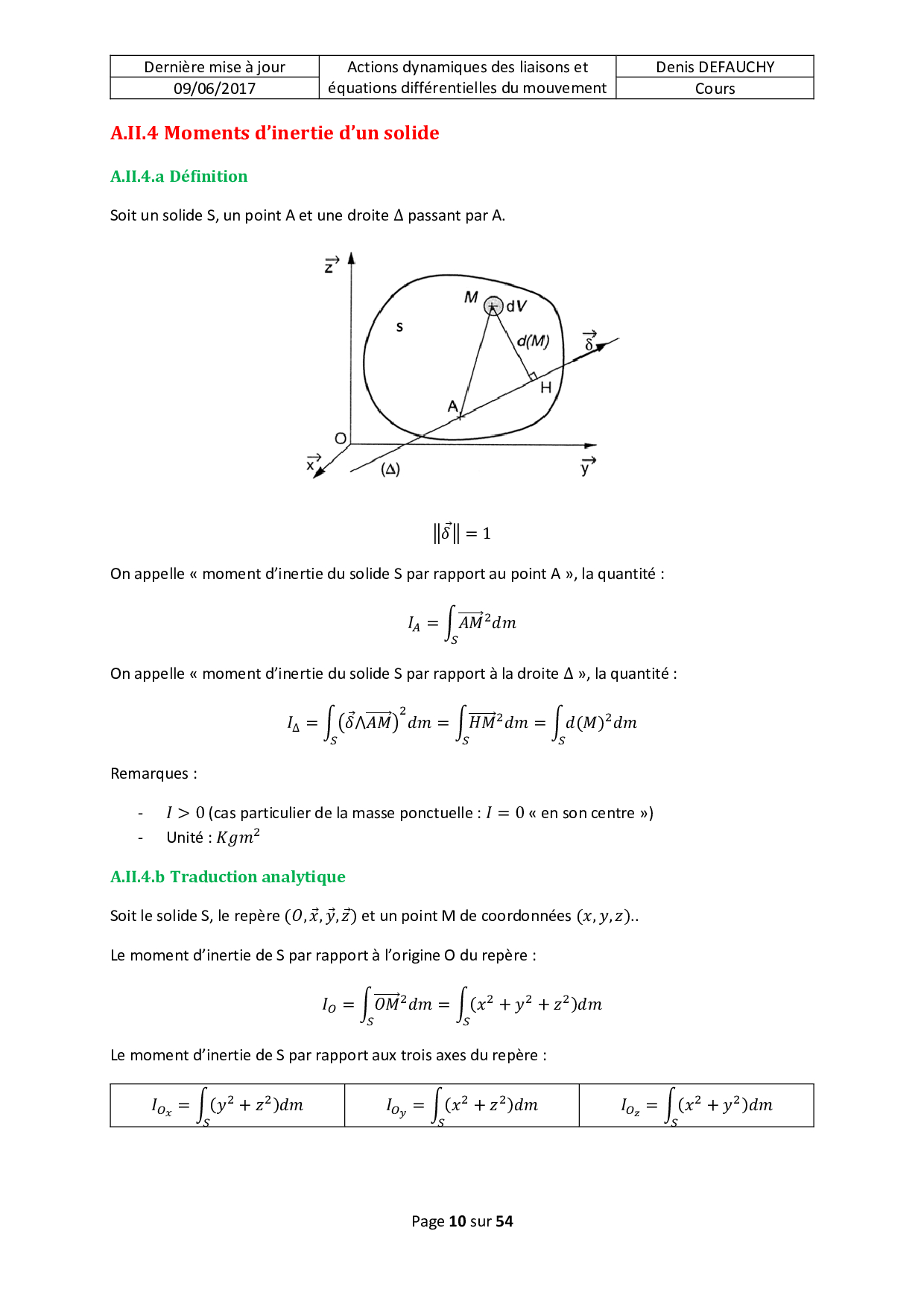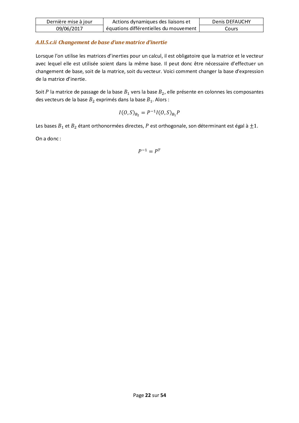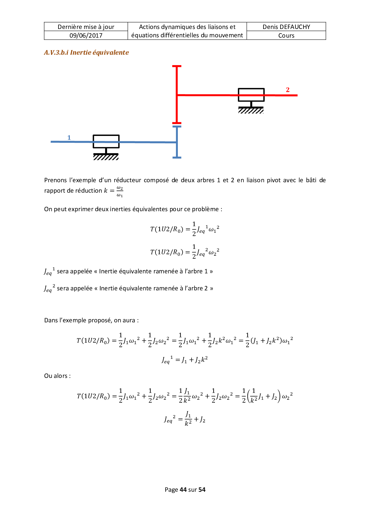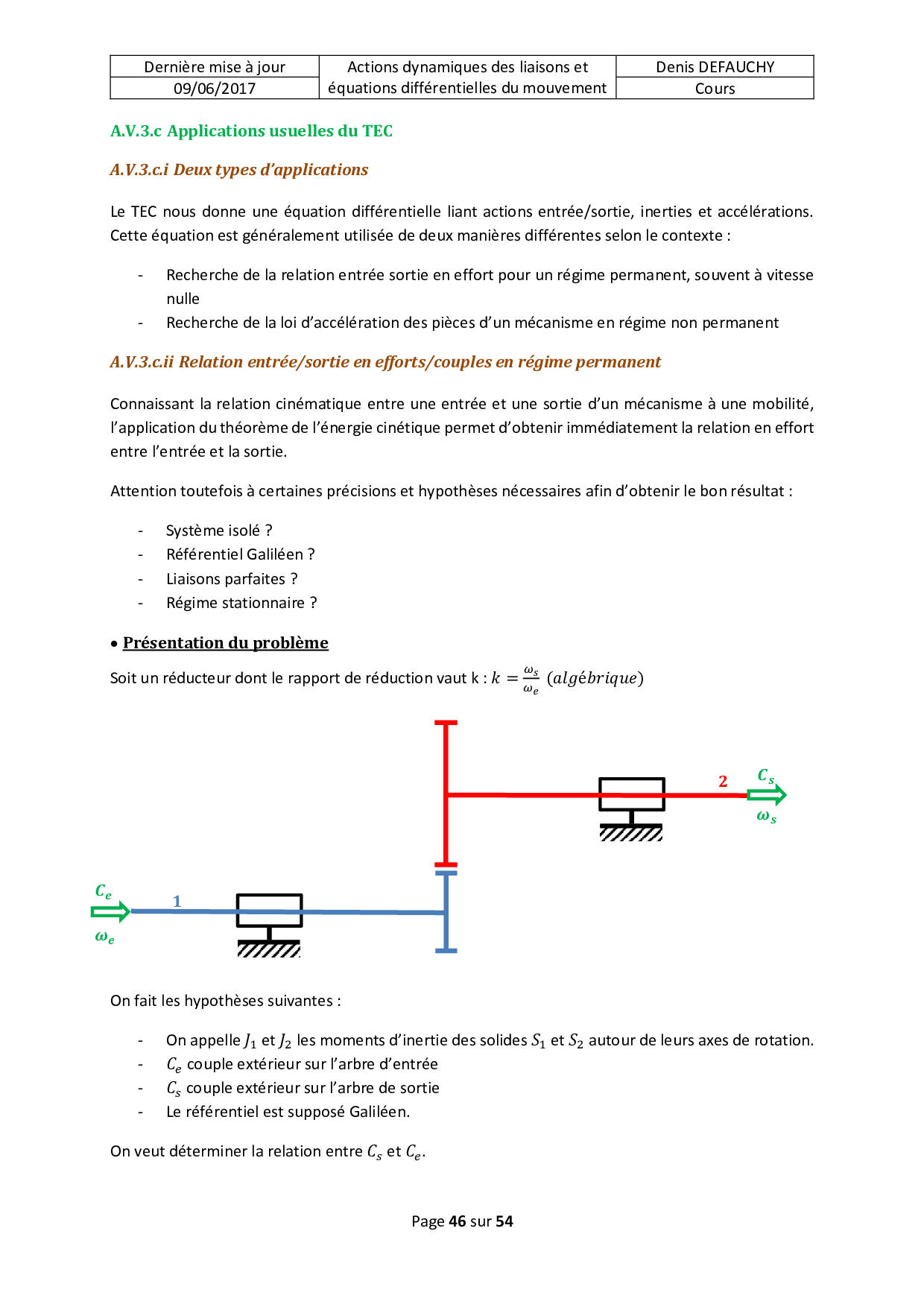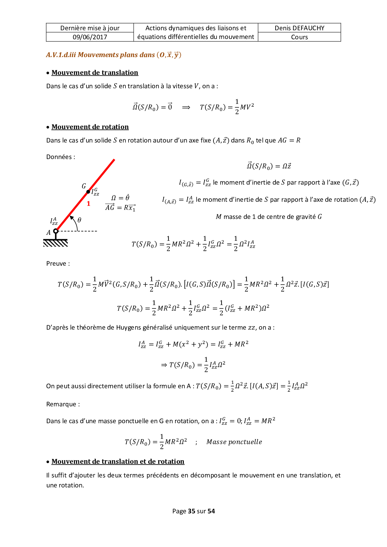 Cours complet : Actions dynamiques des liaisons et équations différentielles du mouvement